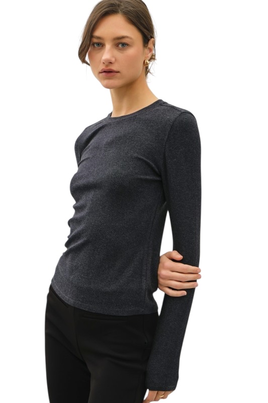 * RIBBED * ROUND NECK * LONG SLEEVES * KNIT TOP * PULLOVER STYLE * LAYERING BASIC * MUST-HAVE BASIC ESSENTIAL * STRETCHY SOFT MATERIAL * RELAXED SLIM FIT * WAIST LENGTH * PERFECT FOR EVERYDAY * CASUAL, CLASSIC, MINIMAL LOOK