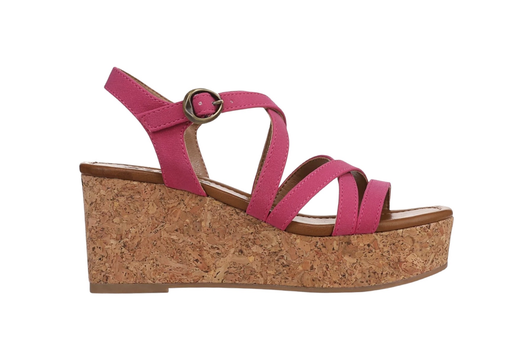 Step up your style with the Aurora sandal from Blowfish Malibu, featuring a metal buckle closure and a cork wedge. Faux-leather upper. Metal buckle closure. Cork wedge wrap. Strappy sandal. Open toe.