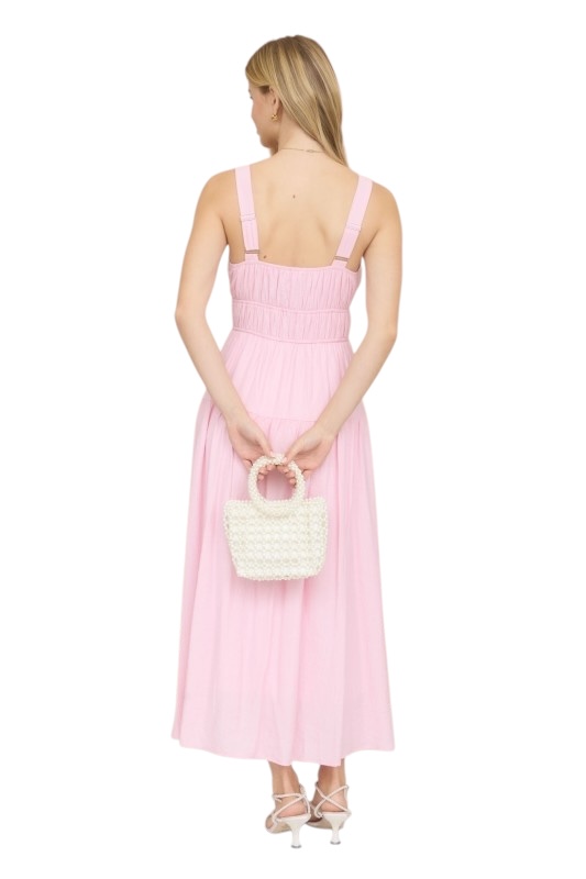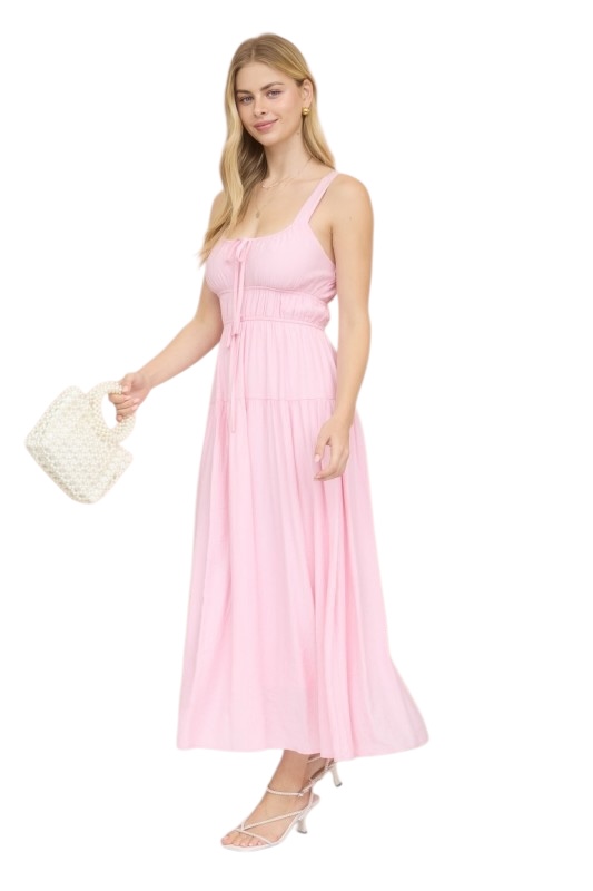 BLUPEPPER ADJUSTABLE STRAPS SHIRRED WAIST MAXI