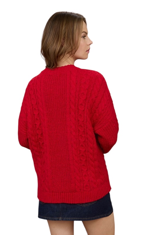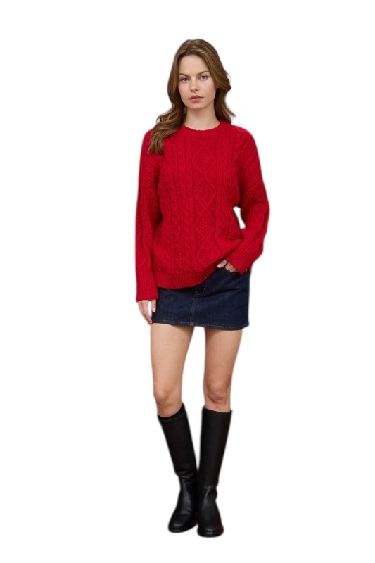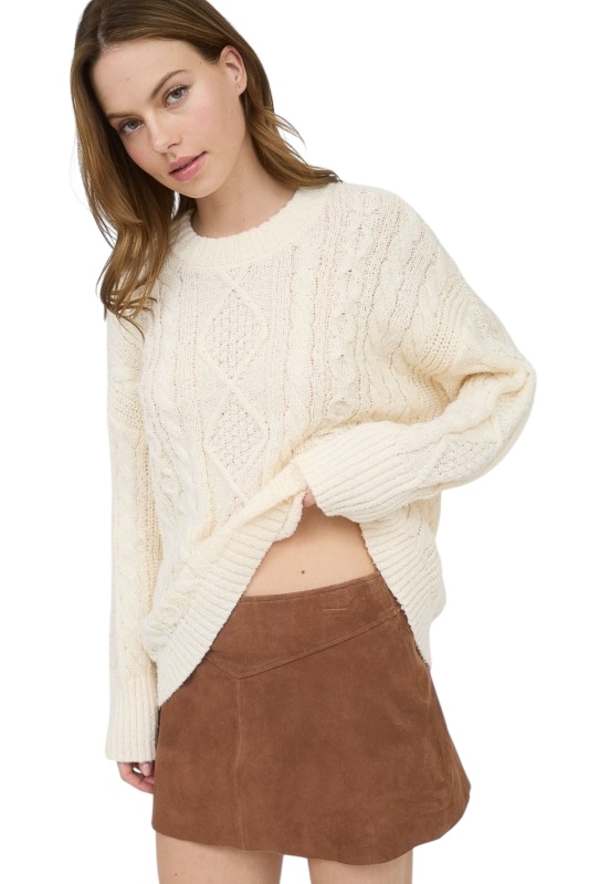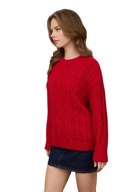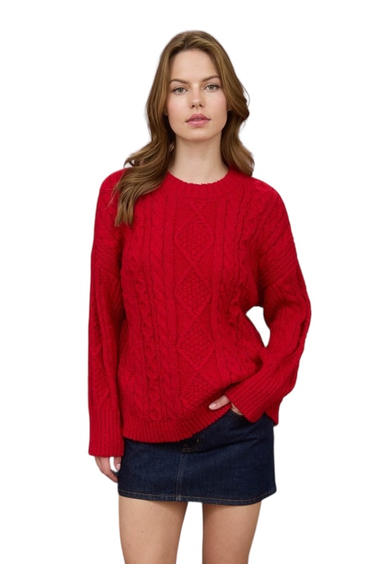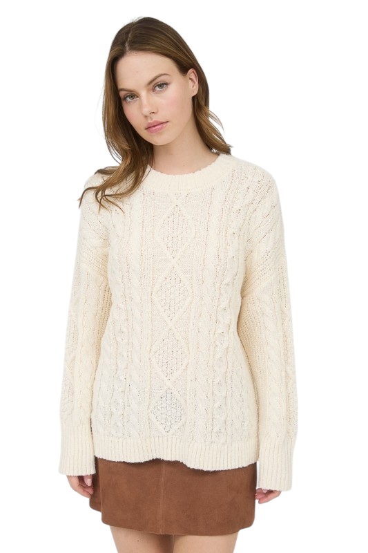 BLUPEPPER CREWNECK CABLE KNIT SWEATER