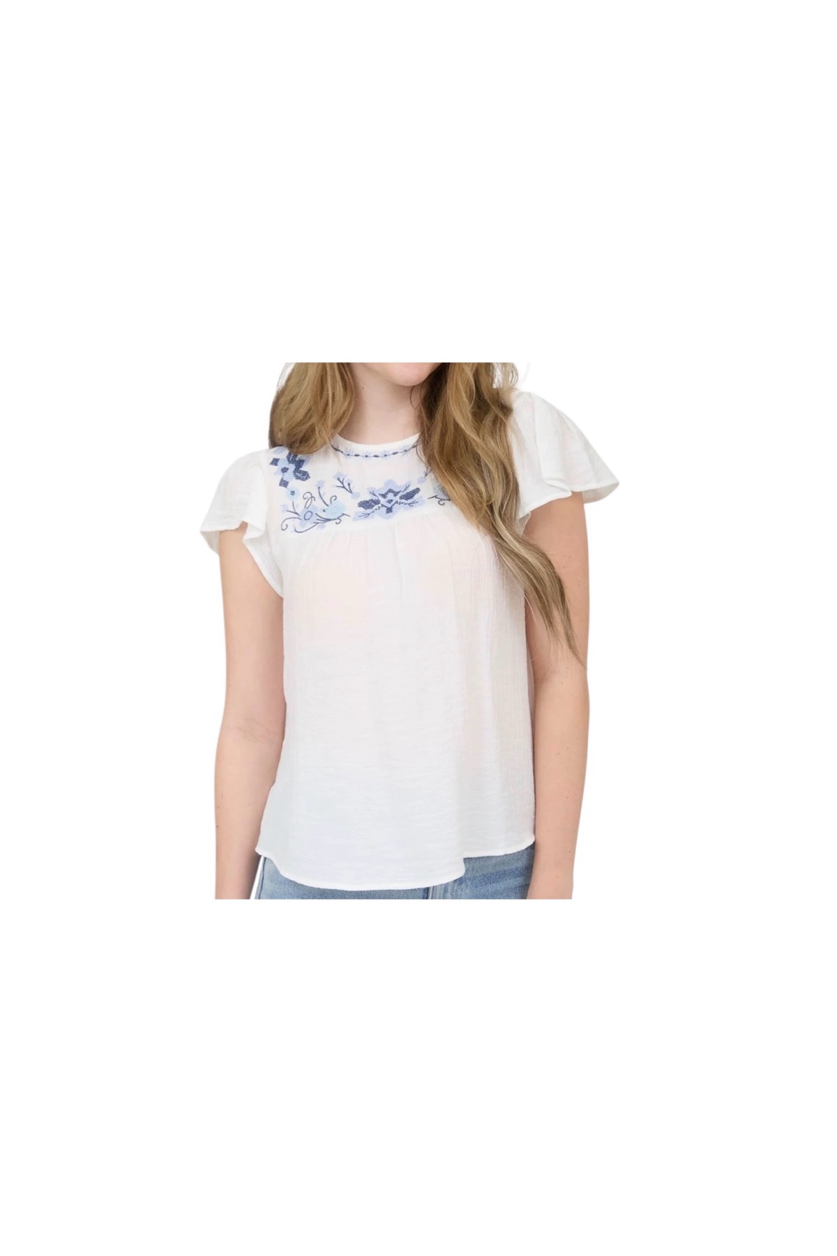 / BLUPEPPER FLORAL EMBROIDERED FLOUNCE SLEEVE TOP