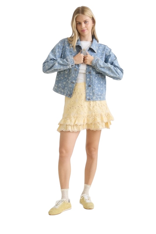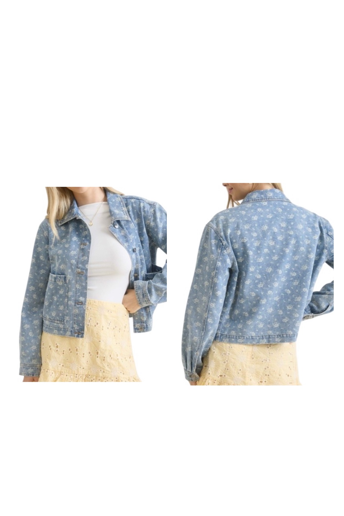 / BLUPEPPER FLORAL WASHED BUTTON DOWN JACKET