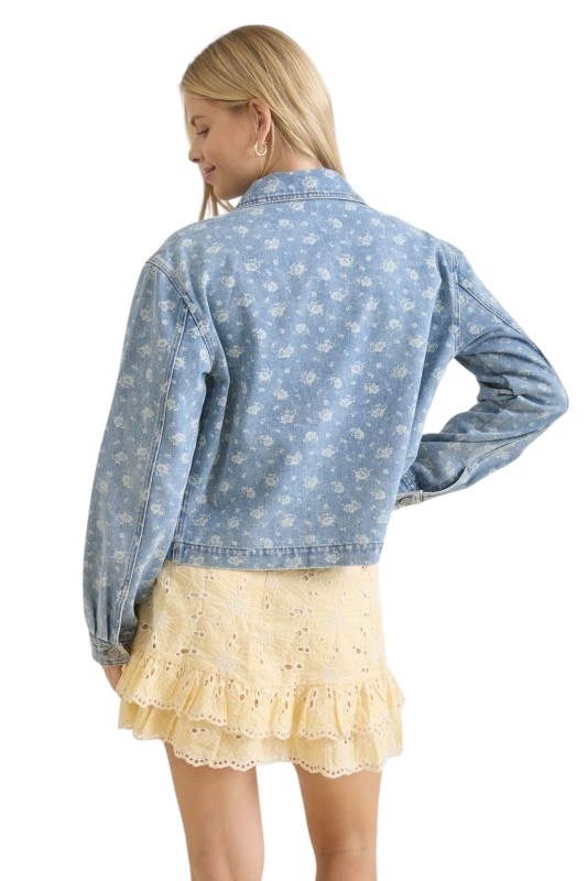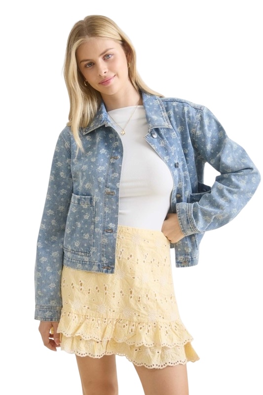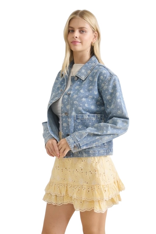 BLUPEPPER FLORAL WASHED BUTTON DOWN JACKET