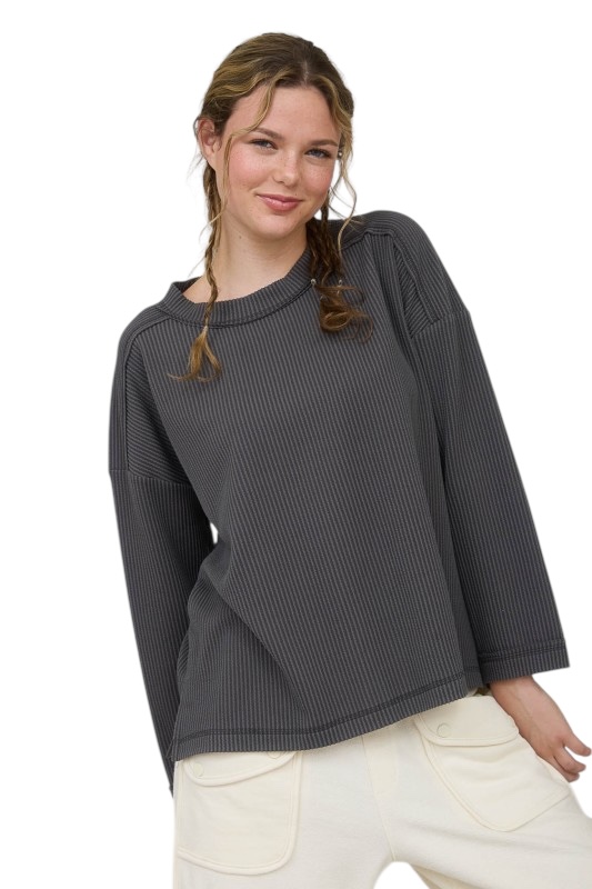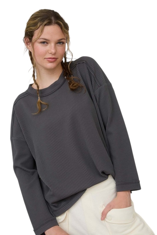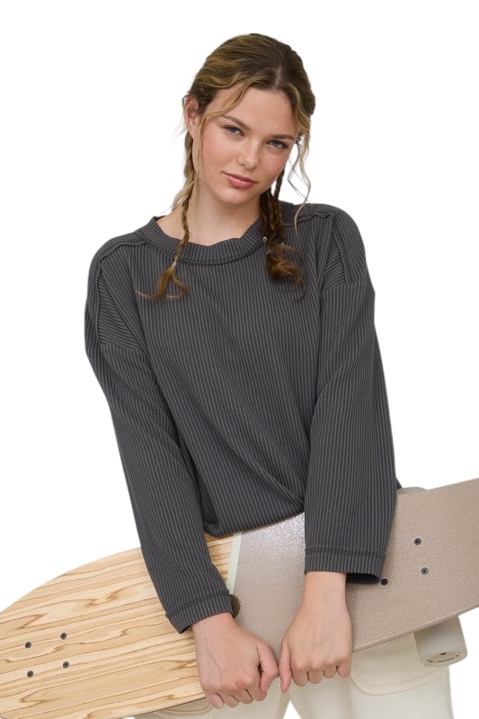 / BLUPEPPER LONG SLEEVE CREWNECK RIBBED KNIT TOP