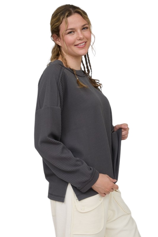 BLUPEPPER LONG SLEEVE CREWNECK RIBBED KNIT TOP