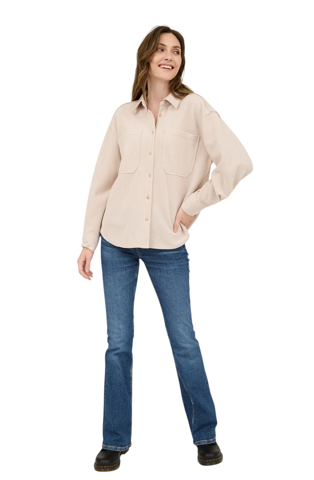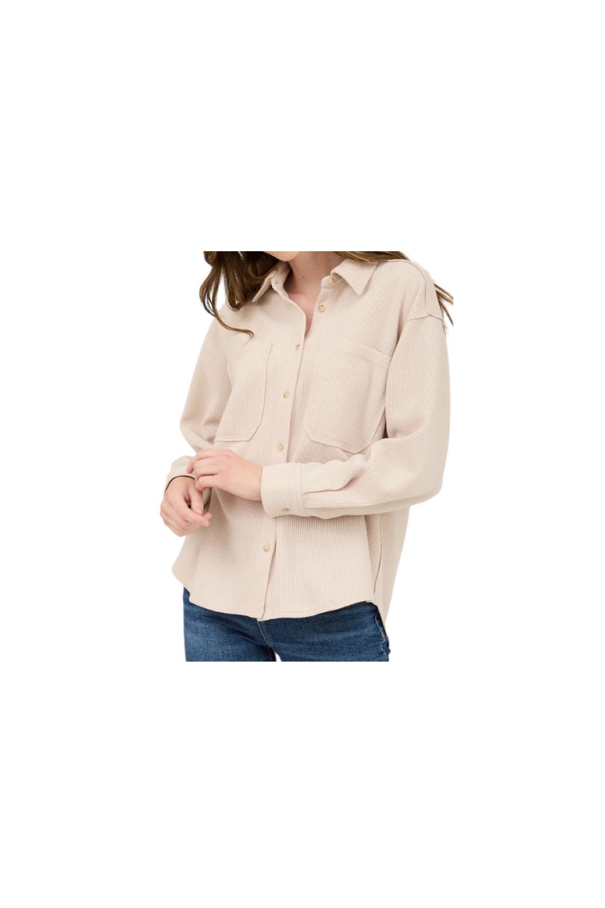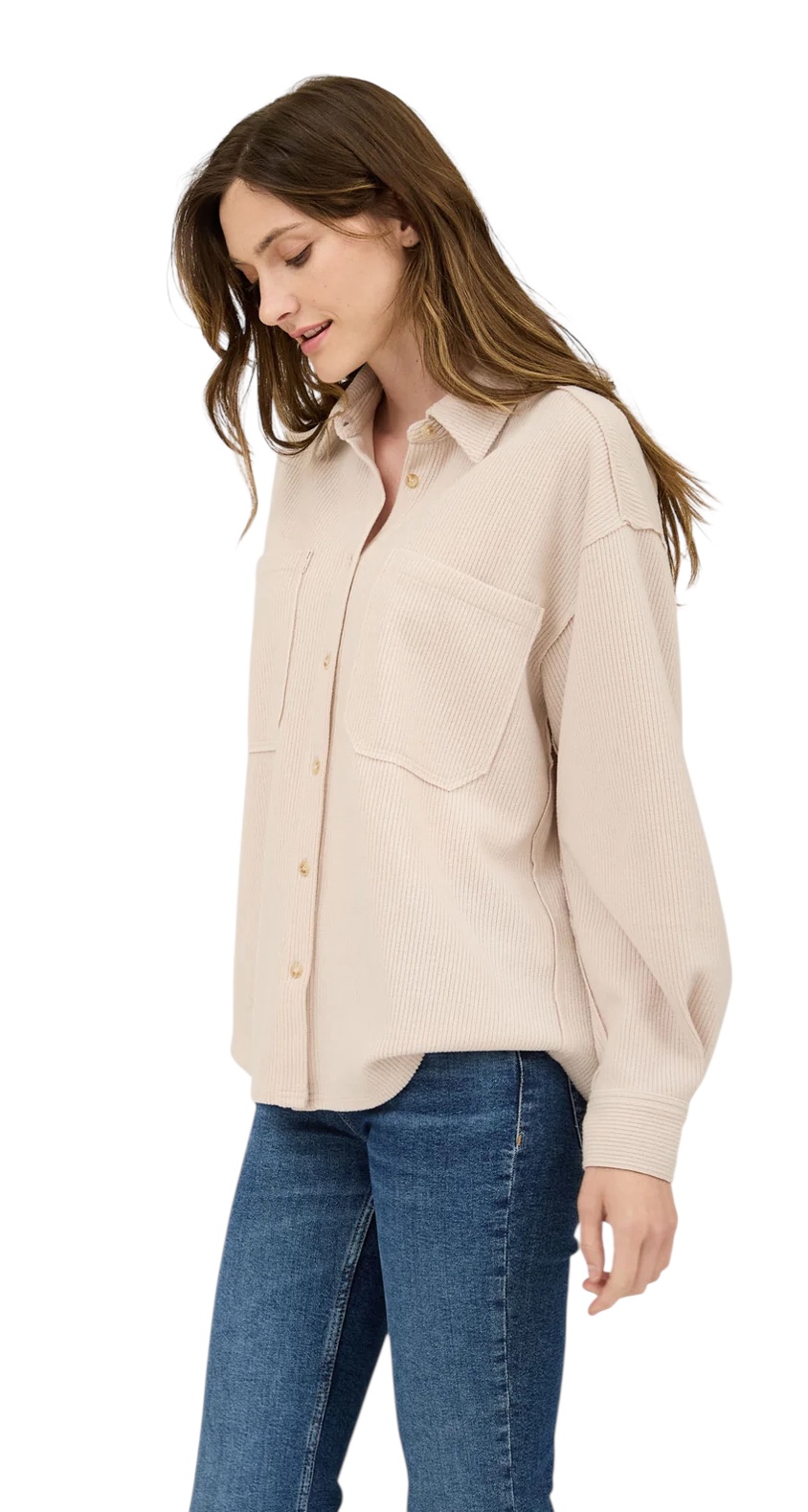 BLUPEPPER RIB KNIT EXPOSED SEAM BUTTON UP