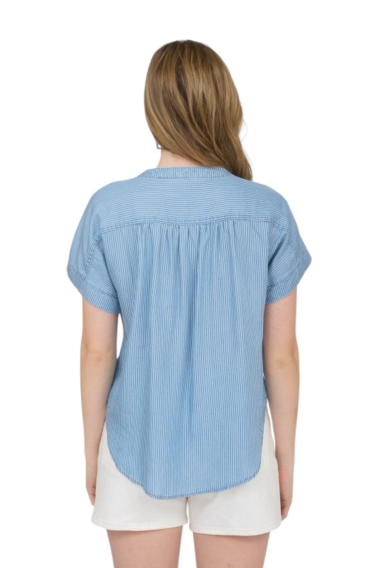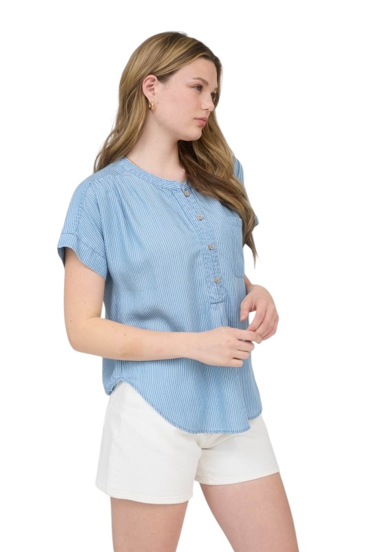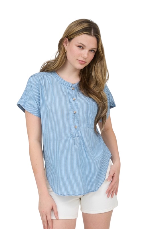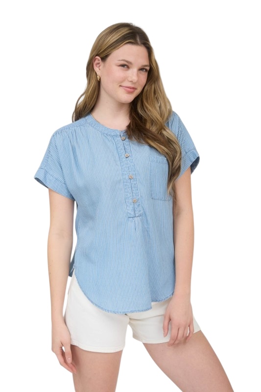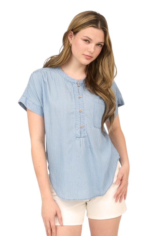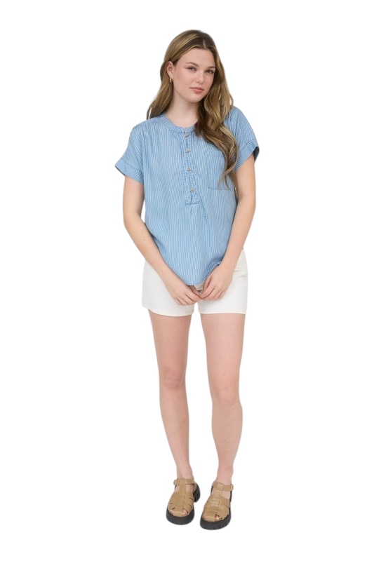 BLUPEPPER SHORT SLEVE STRIPED CHAMBRAY HENLEY