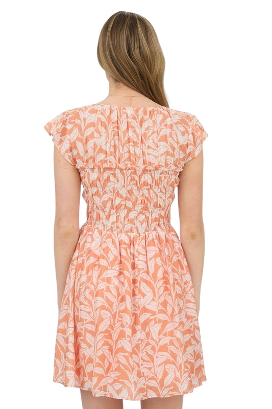 BLUPEPPER SMOCKED BODICE LEAF PRINT DRESS