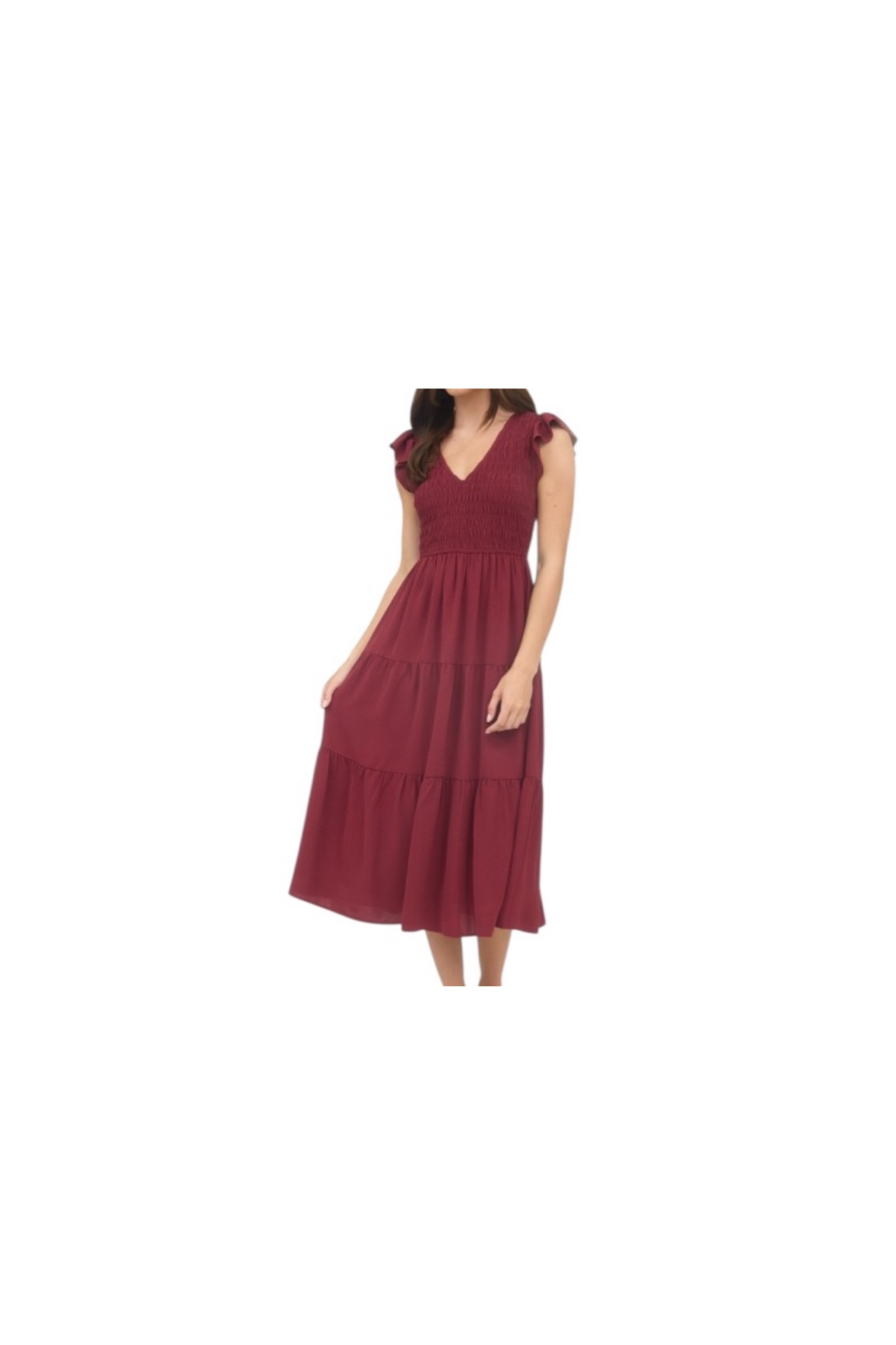 BLUPEPPER SMOCKED V-NECK MIDI DRESS quantity