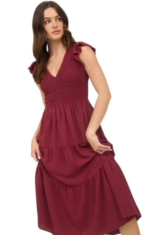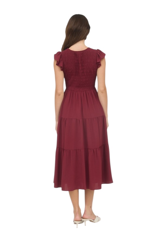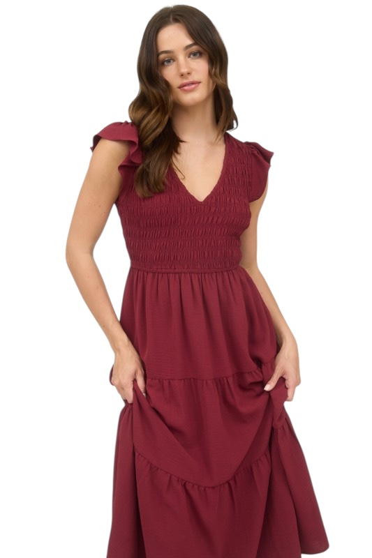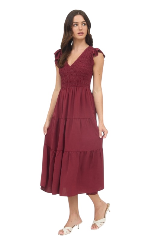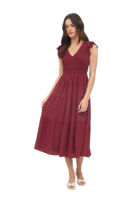 BLUPEPPER SMOCKED V-NECK MIDI DRESS