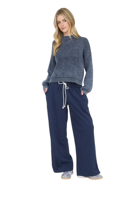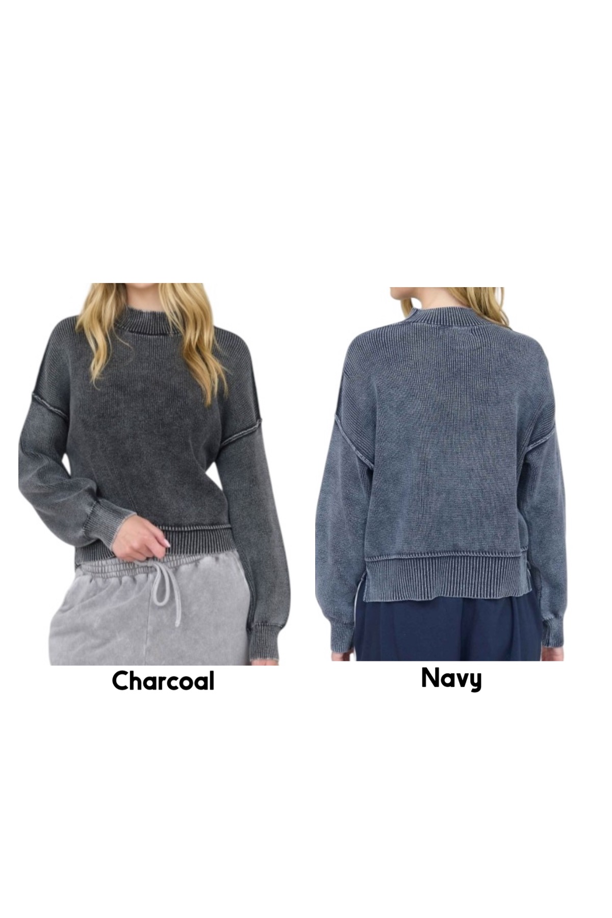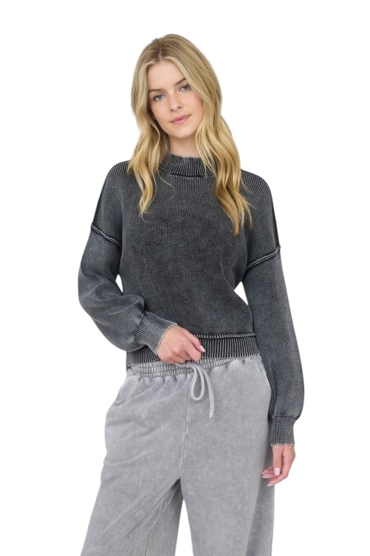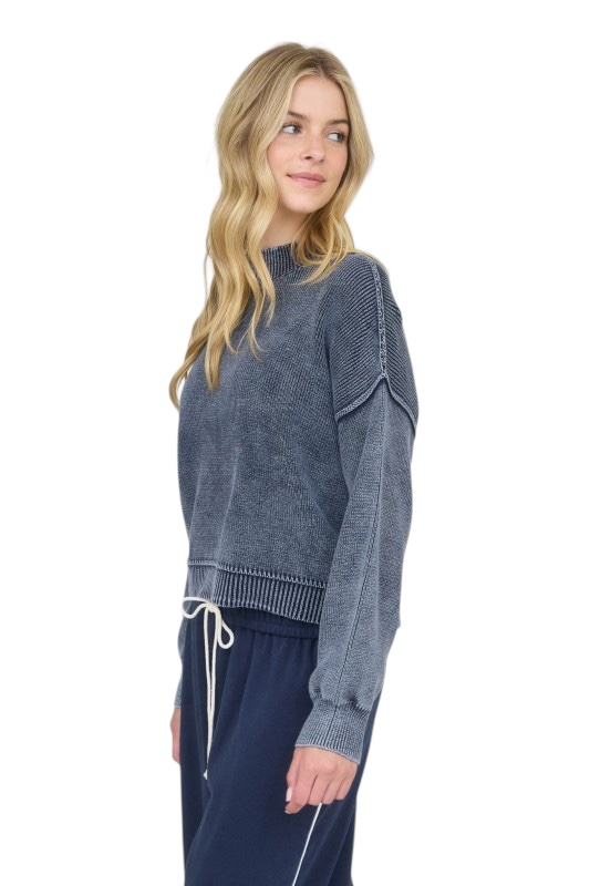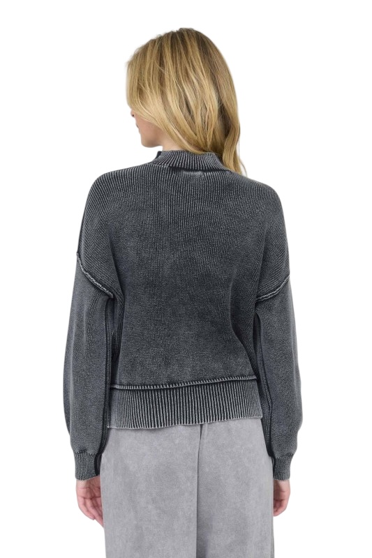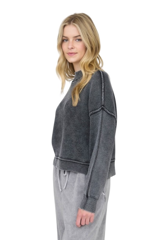 BLUPEPPER WASHED MOCK NECK PULLOVER SWEATER