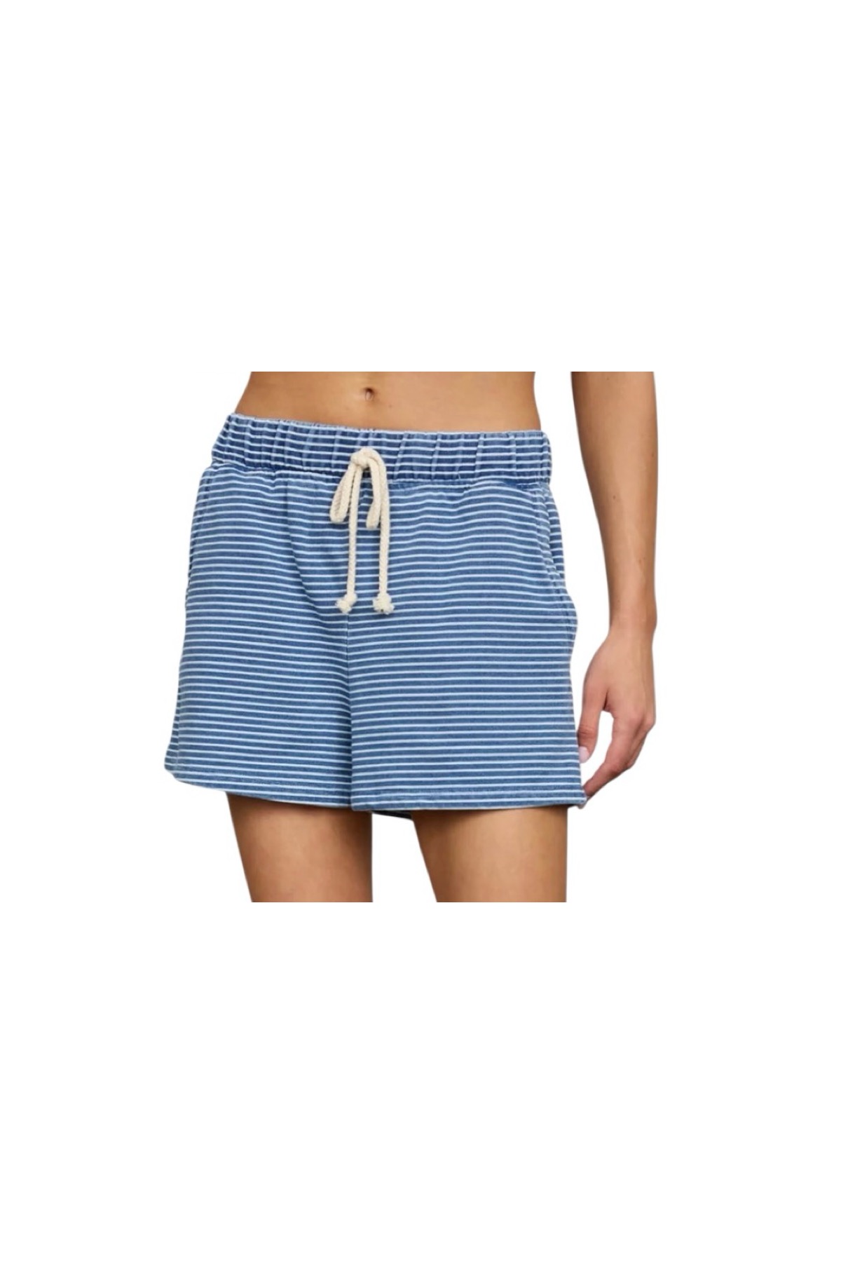 / BLUPEPPER WASHED STRIPE DRAWSTRING KNIT SHORTS