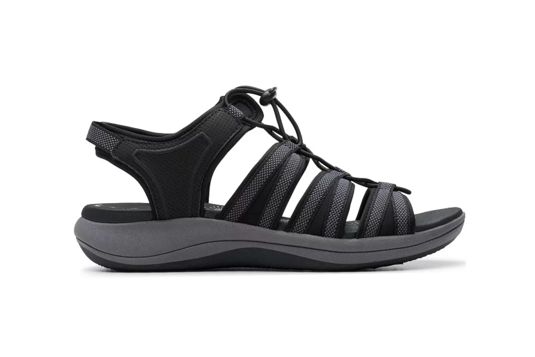 Hardwearing summer sandal Mira Mabel preps feet for summer with its supportive, breathable design. It fastens in place with a toggle bungee, lending an adjustable, comfortable fit, while Clarks Cloudsteppers plush Cushion Soft™ footbed offers pillowy support that never falters.
