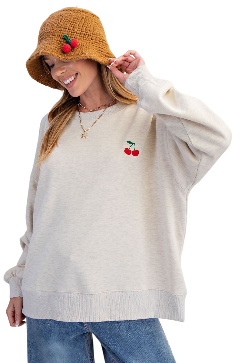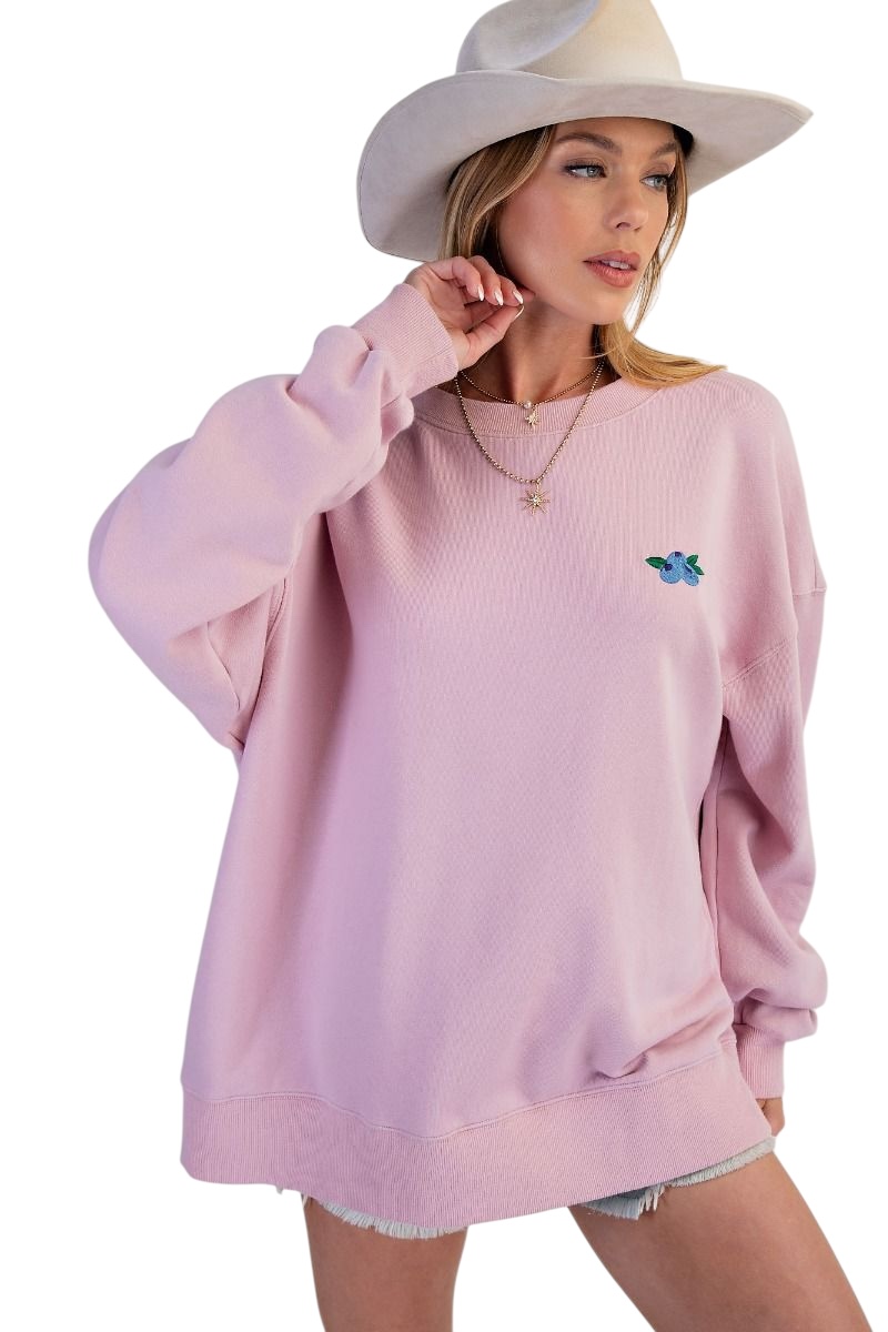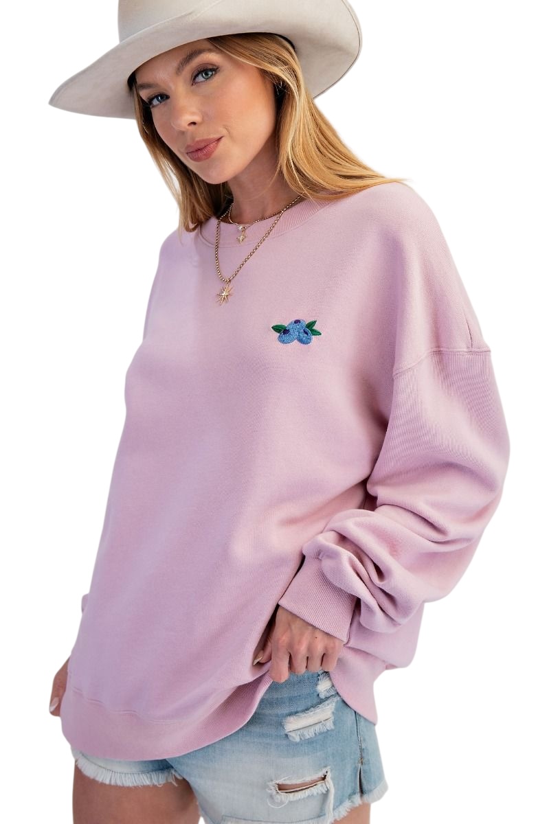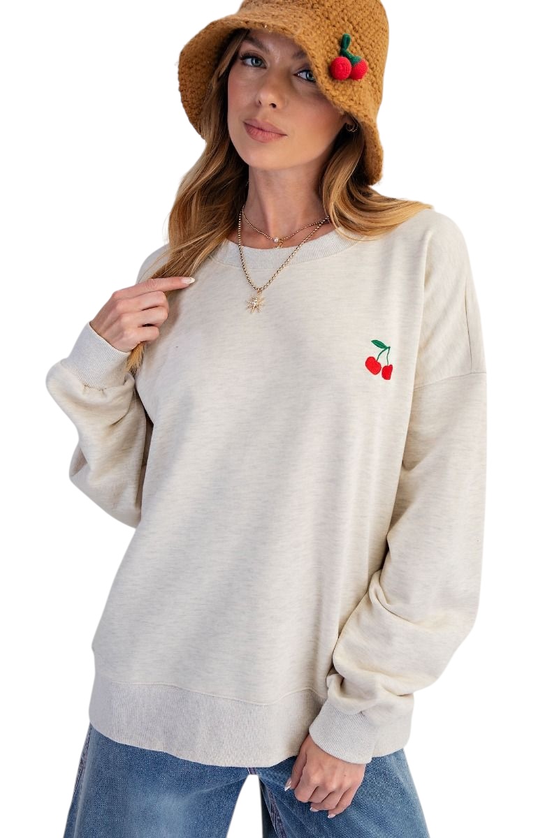 EASEL LONG SLEEVE EMBROIDERED FRUIT SOFT SWEATSHIRT