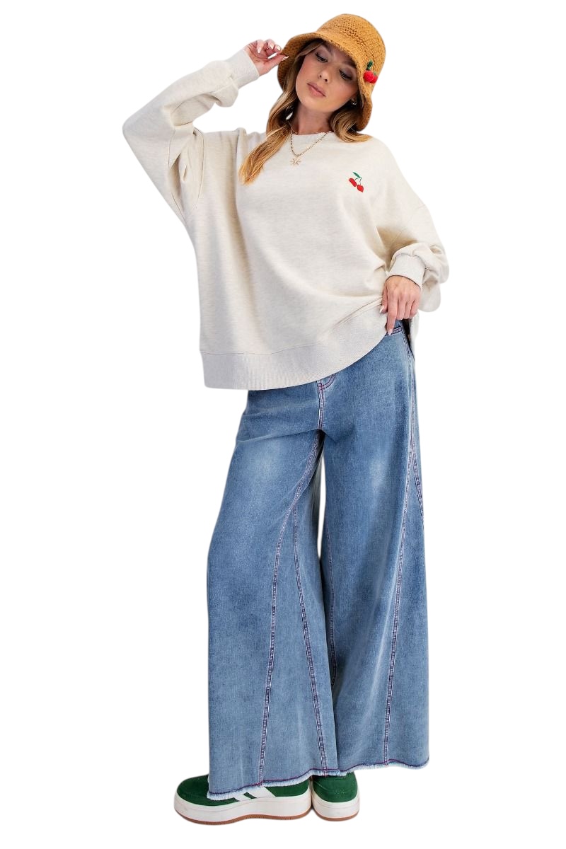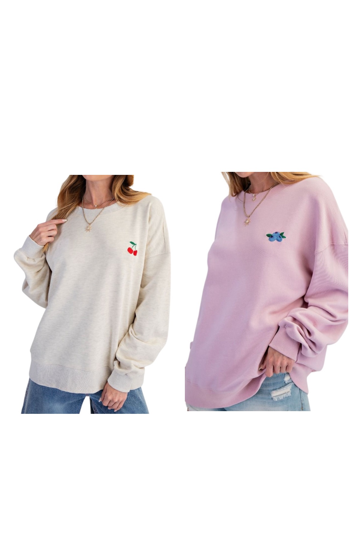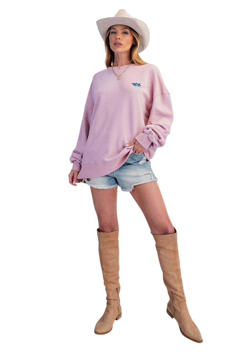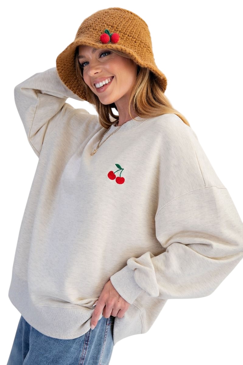 EASEL LONG SLEEVE EMBROIDERED FRUIT SOFT SWEATSHIRT