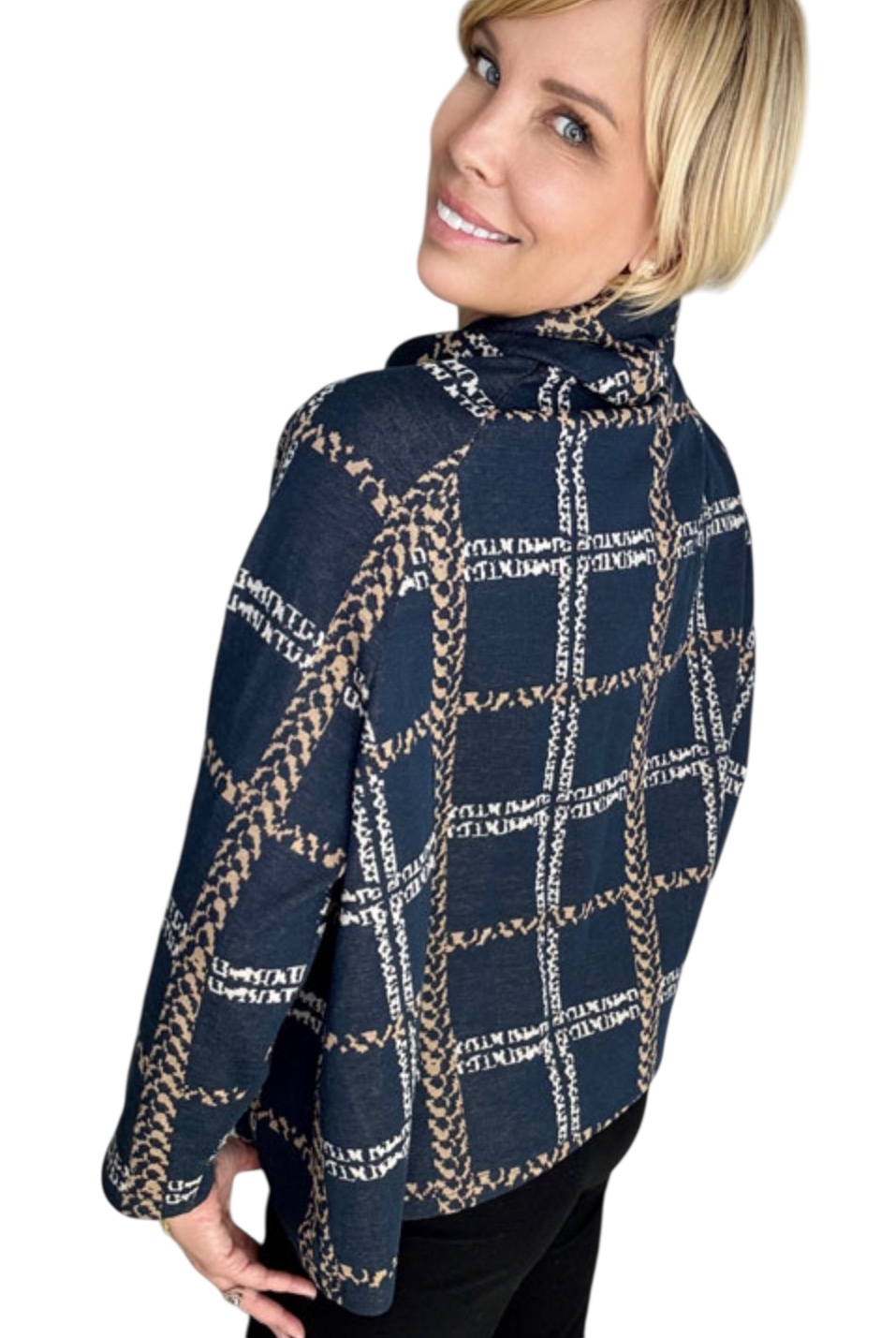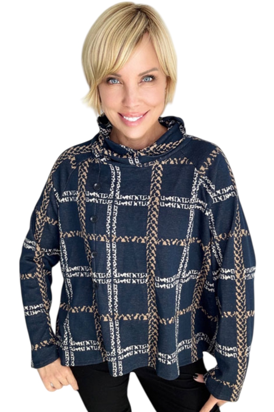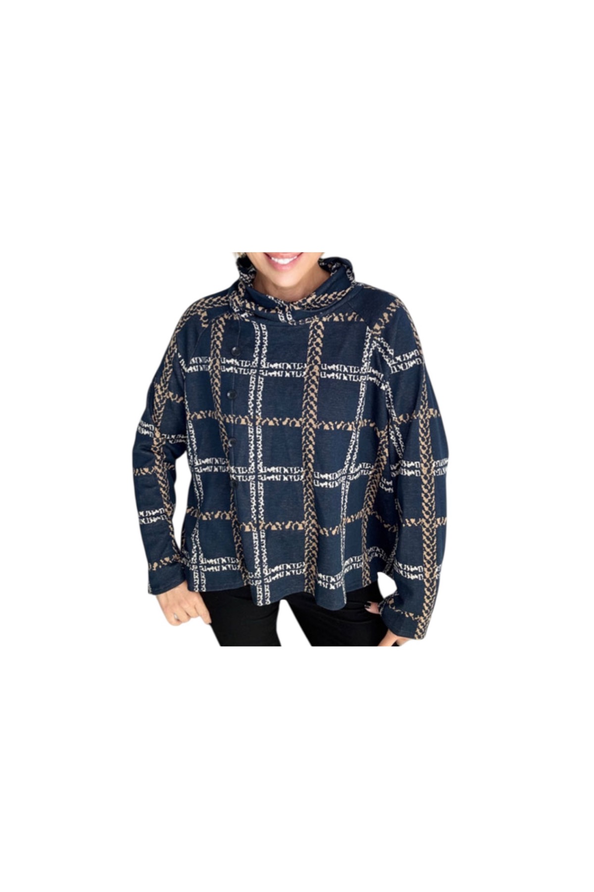 ETHYL PLAID PULLOVER WITH BUTTON TRIM SWEATER