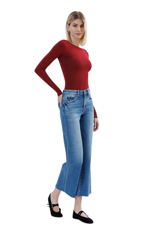 FLYING MONKEY HIGH RISE RAW HEM SLIM WIDE