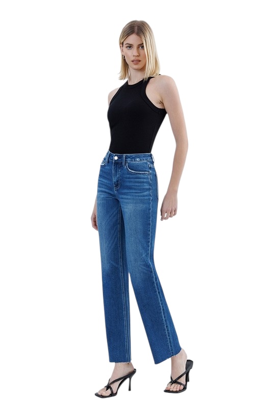 FLYING MONKEY HIGH RISE RAW HEM STRAIGHT JEAN