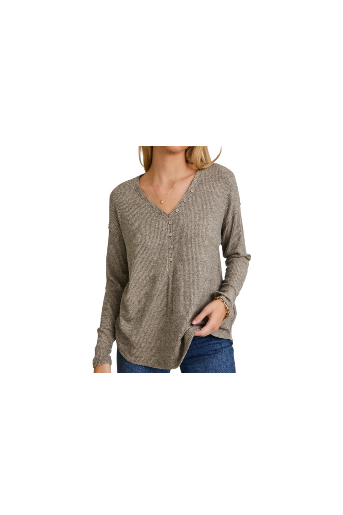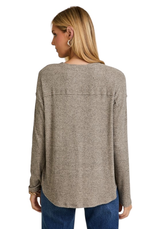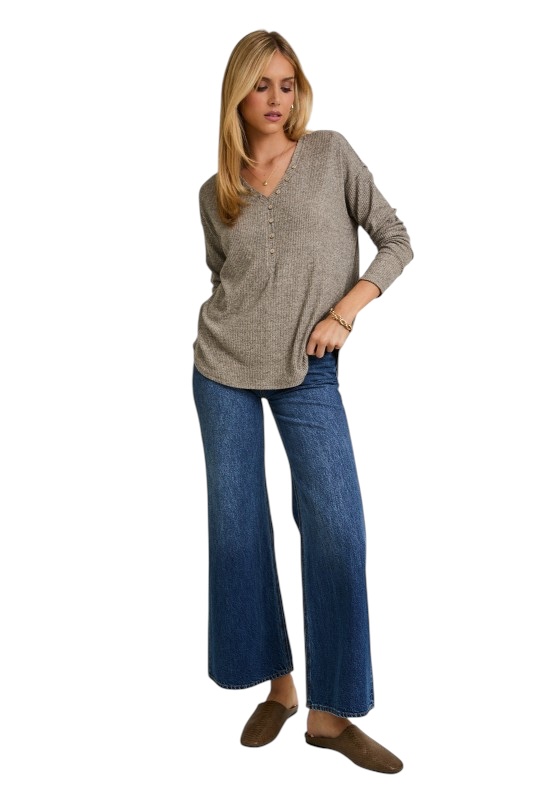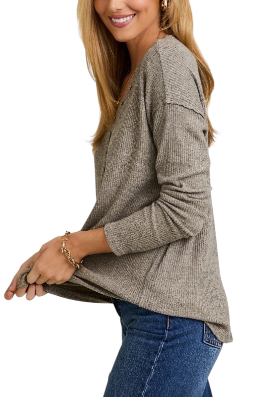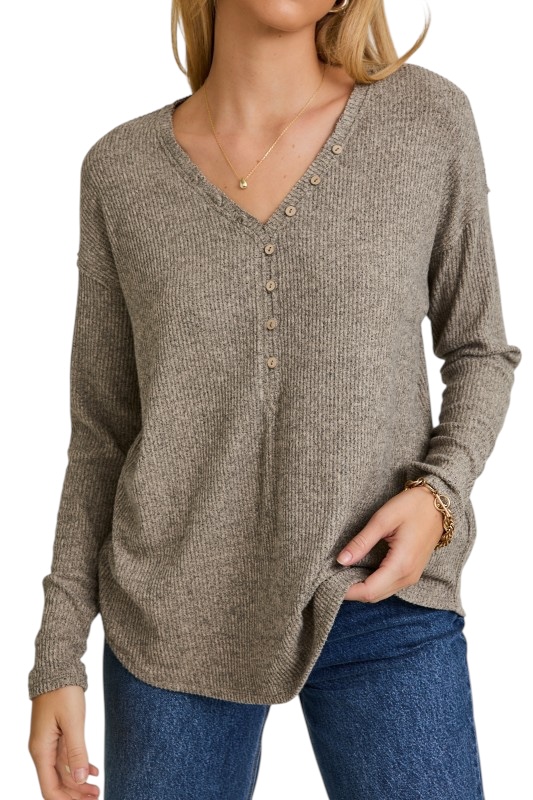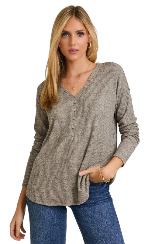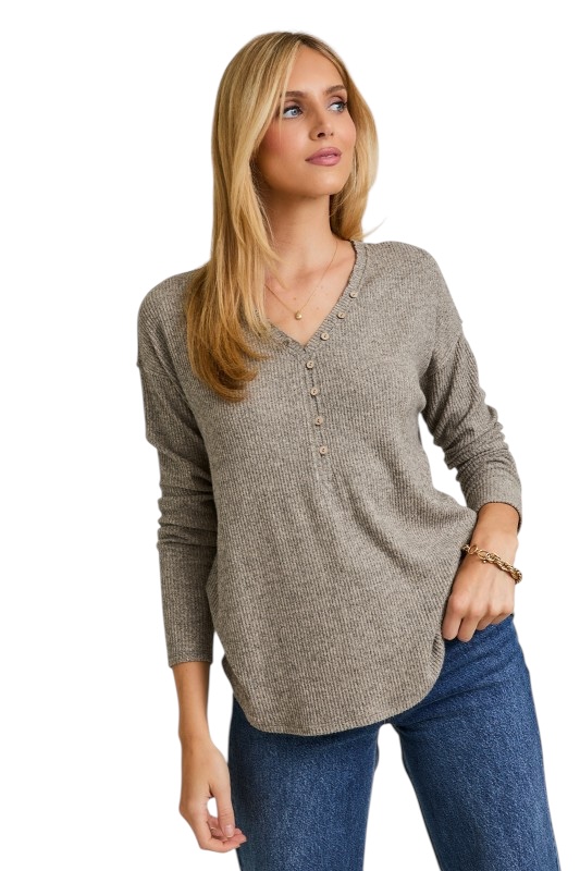 GILLI SUPER SOFT V-NECK HENLEY TOP