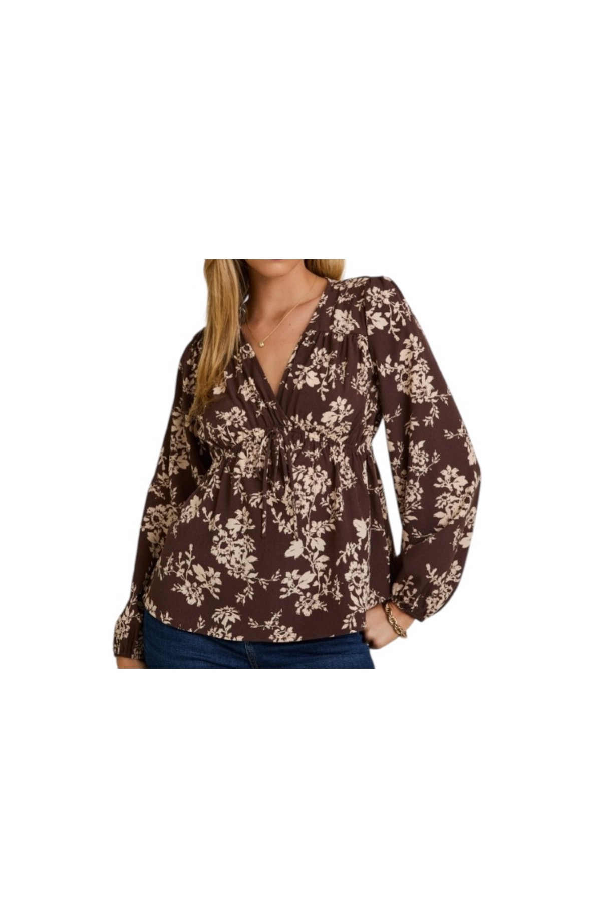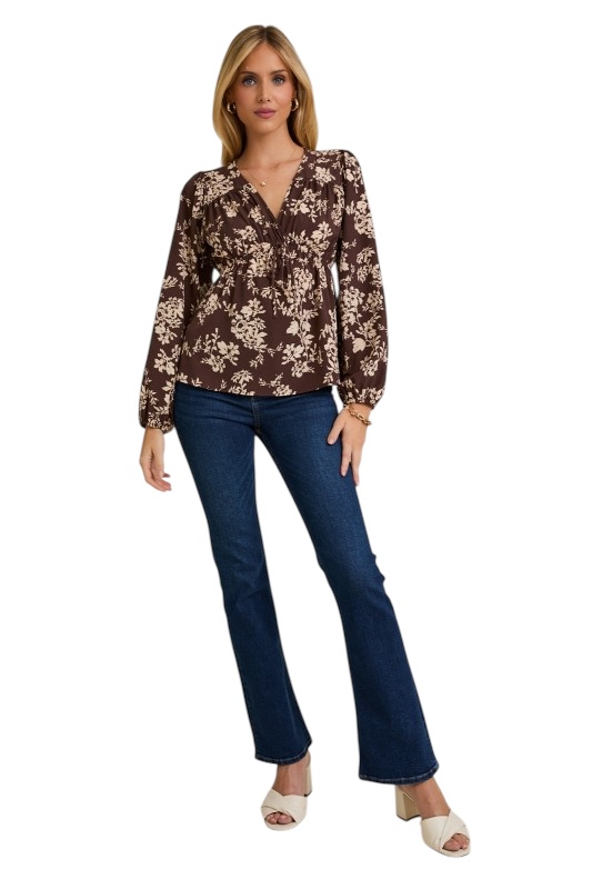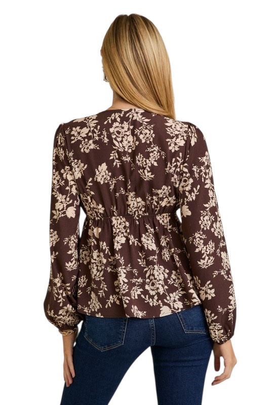 GILLI V-NECK FLORAL BABYDOLL TOP quantity