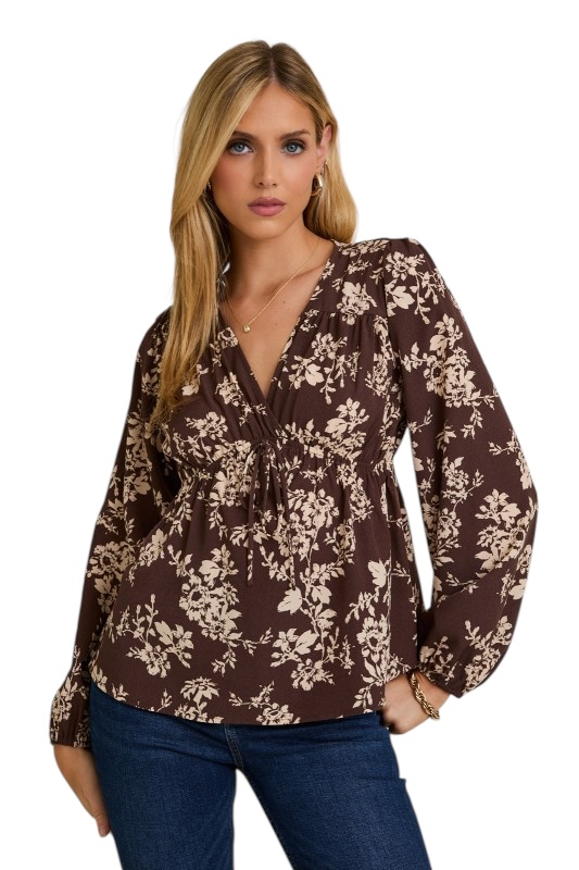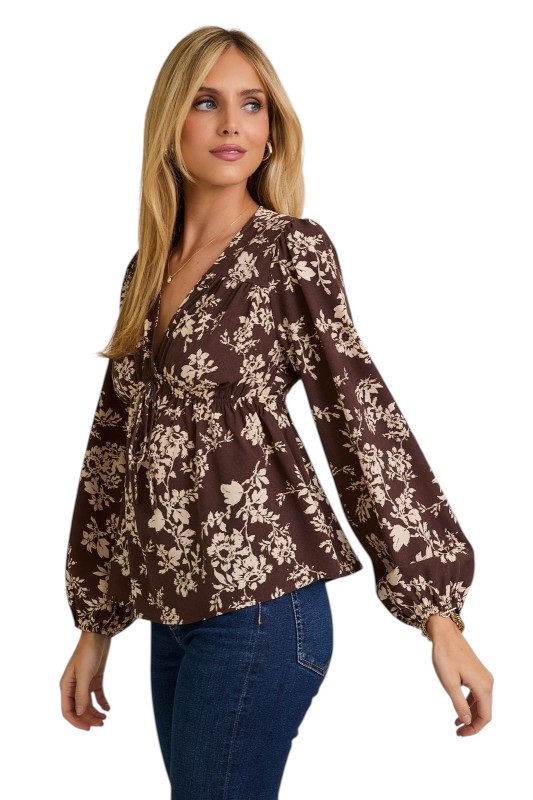 GILLI V-NECK FLORAL BABYDOLL TOP