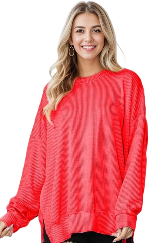 / HAILEY APPAREL WAVE RIB PULLOVER WITH SIDE SLIT