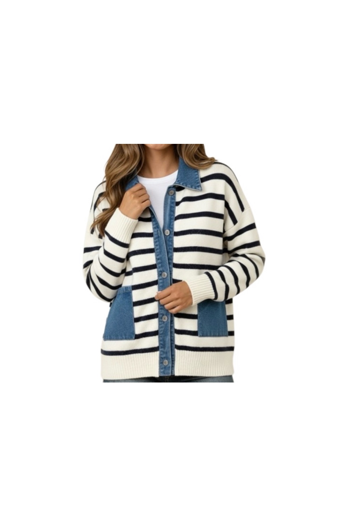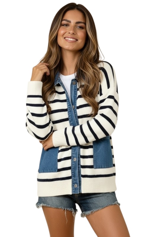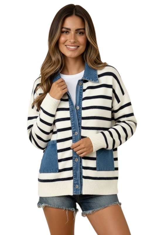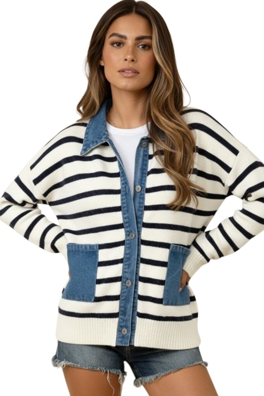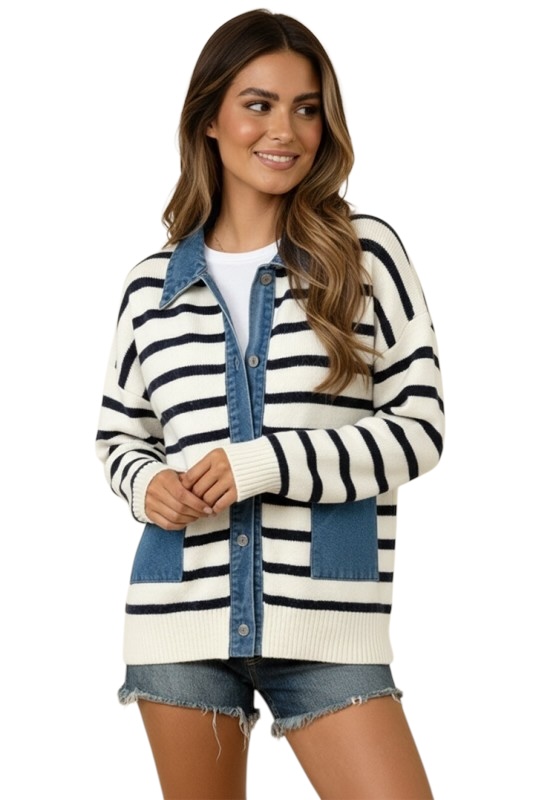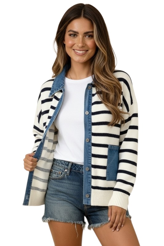 / HAPTICS DENIM TRIM STRIPED JACKET
