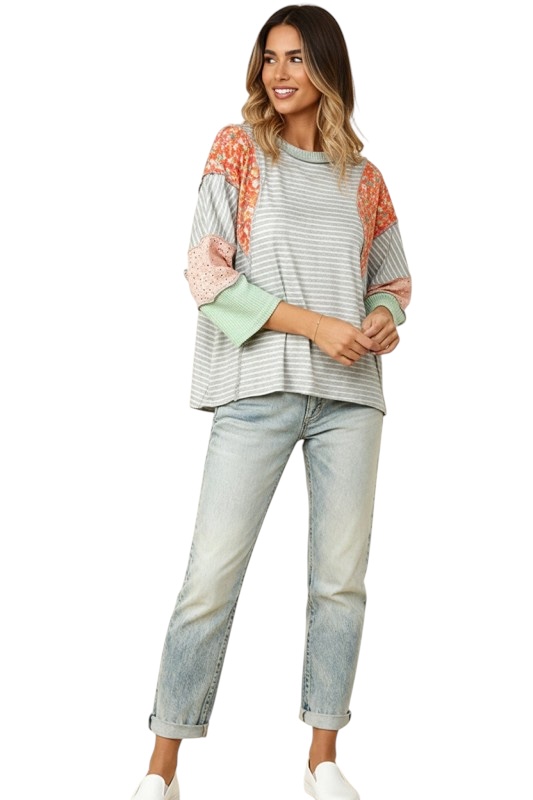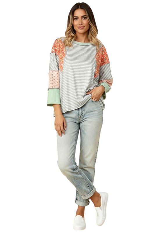 / HAPTICS LOOSE FIT BLOCK PRINT TOP