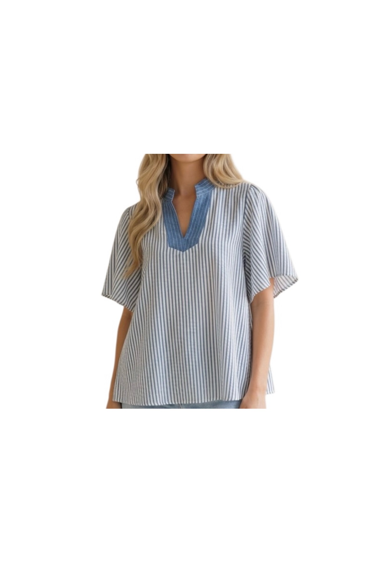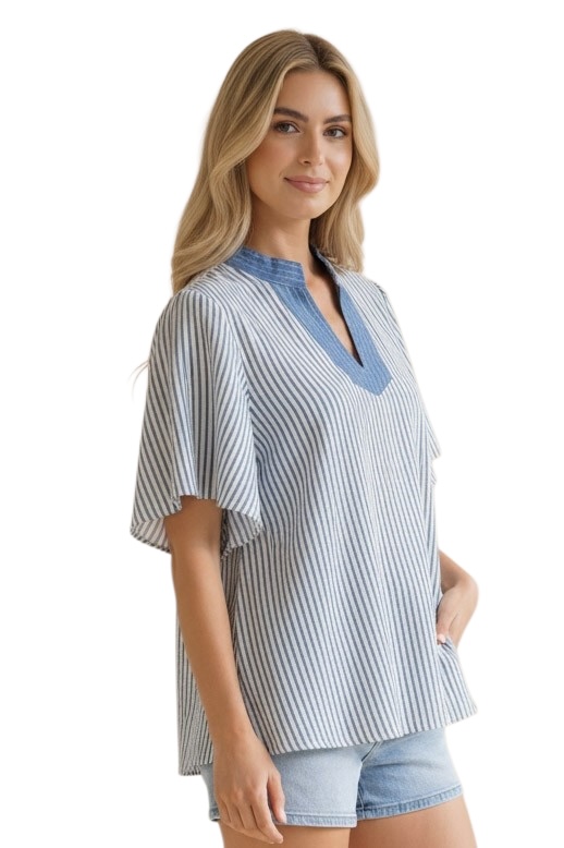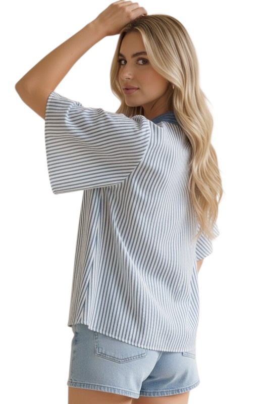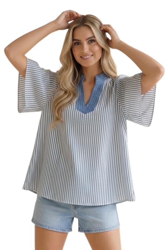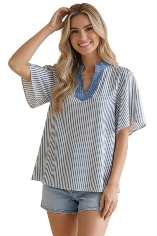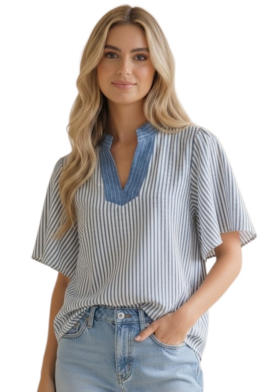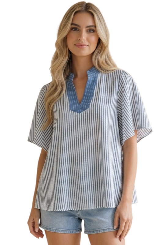 HAPTICS VERTICAL PINSTRIPE WOVEN BLOUSE