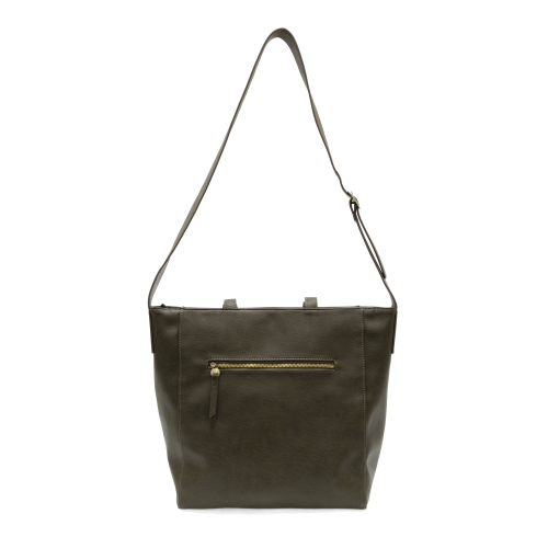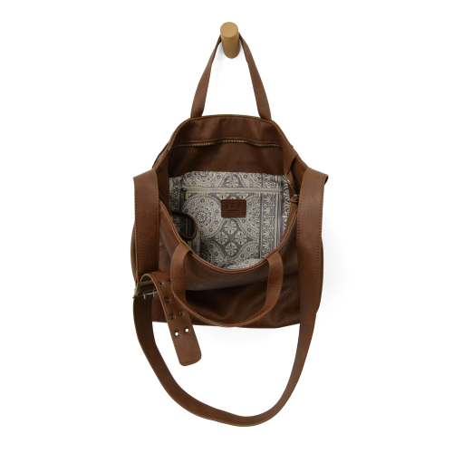 A VERSATILE TOTE WITH PLENTY OF ROOM TO GET YOU TO WORK, THE GYM AND BACK AGAIN! THE ALMA BAG IS CRAFTED IN TUMBLED VEGAN LEATHER AND IS EQUIPPED WITH THOUGHTFUL DETAILS. YOU CAN CARRY BY THE TWO TOP HANDLES OR WEAR AS A CROSSBODY WITH THE ATTACHED ADJUSTABLE SHOULDER STRAP THAT IS ACCENTED WITH A BOLD GOLDEN BUCKLE. THE TOP ZIP CLOSURE OPENS TO REVEAL MULTIPLE INTERIOR POCKETS, INCLUDING A POCKET TO HOLD YOUR REFILLABLE WATER BOTTLE, UP TO A 30 OZ. SIZE.