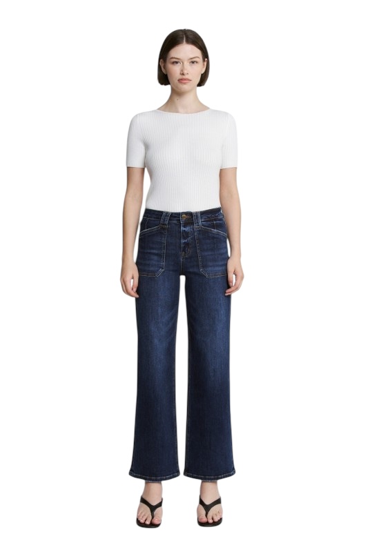 MICA DENIM HIGH RISE WIDE LEG PATCH POCKET JEAN 29″