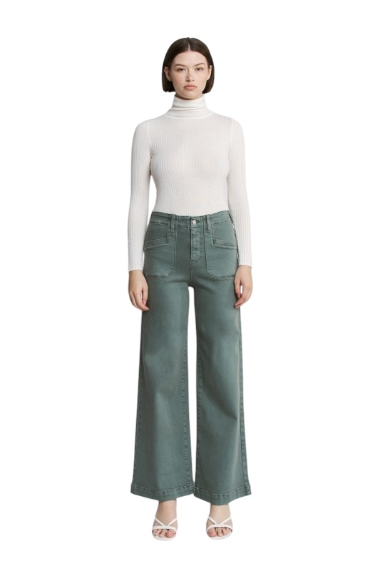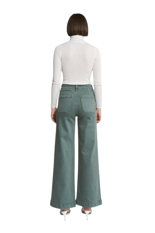 MICA DENIM HIGH RISE WIDE LEG PATCH POCKET PANT