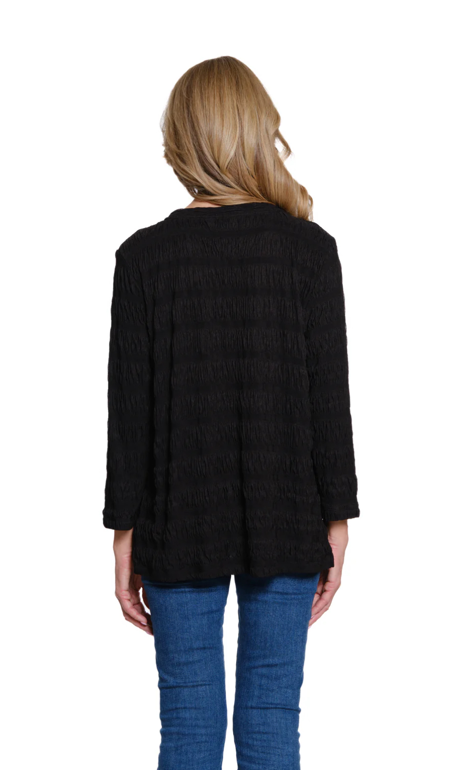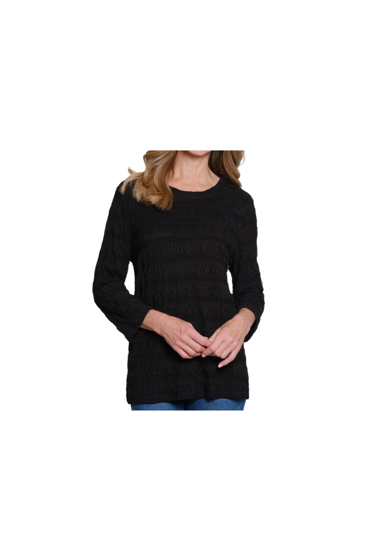 MULTIPLES 3/4 SLEEVE BLACK TEXTURED KNIT TOP
