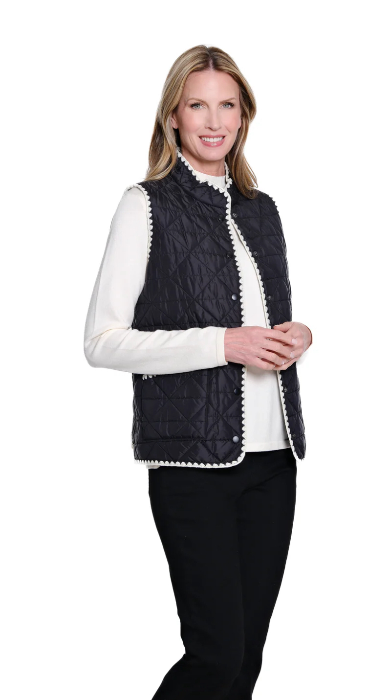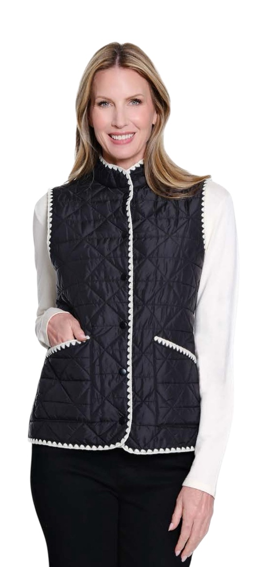 MULTIPLES BLANKET STITCH QUILTED VEST