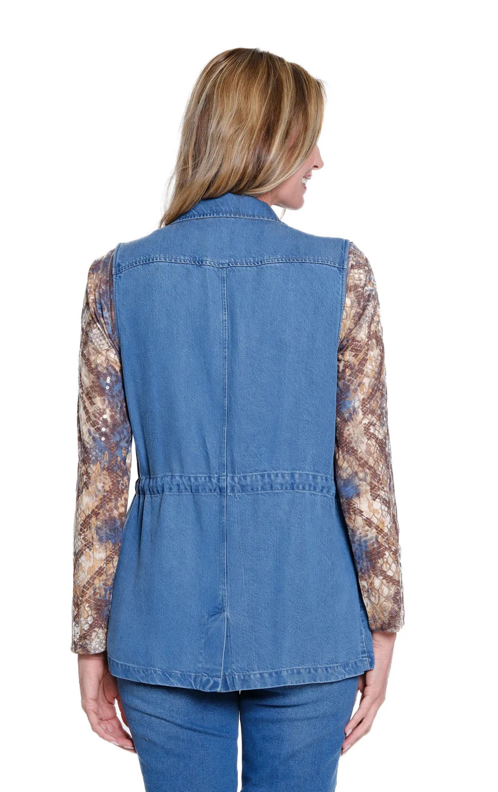 MULTIPLES DRAW STRING WAIST SLUB DENIM VEST