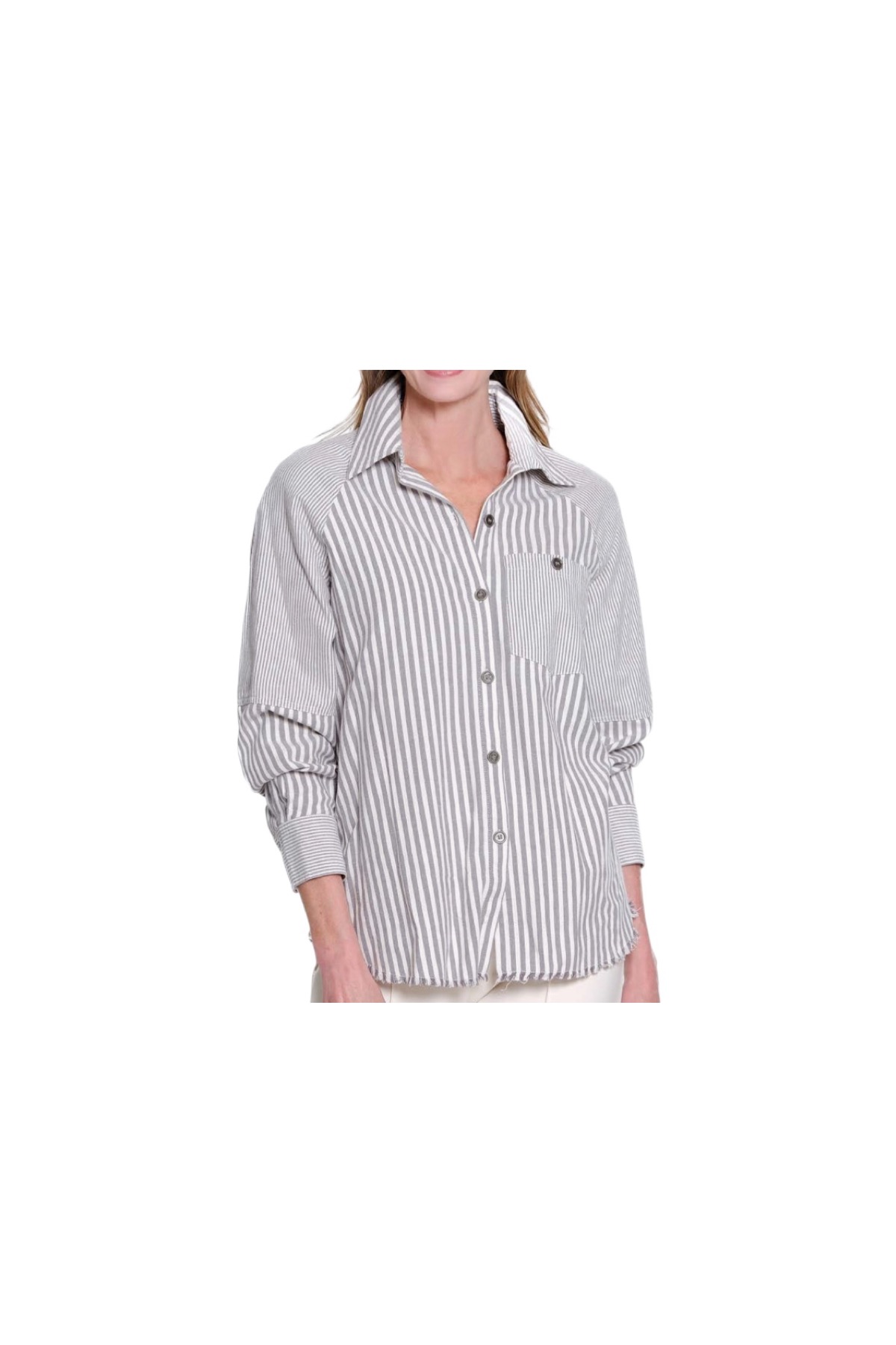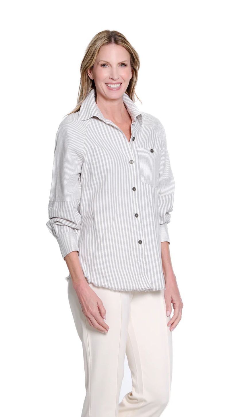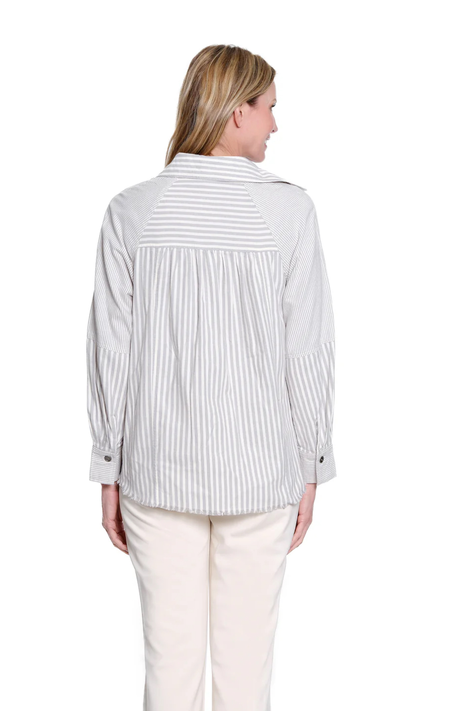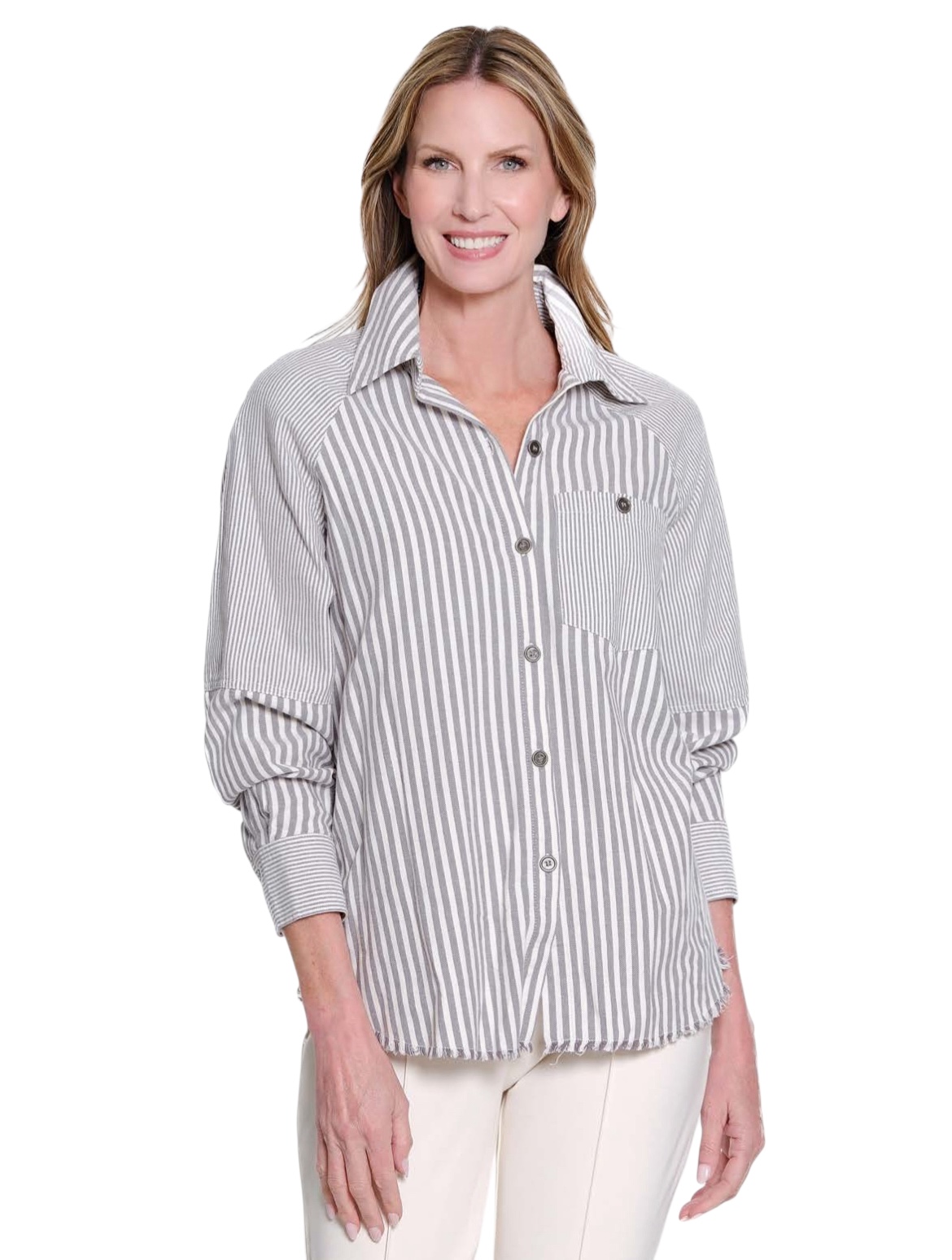 MULTIPLES RAGLAN SLEEVE STRIPE BUTTON SHIRT