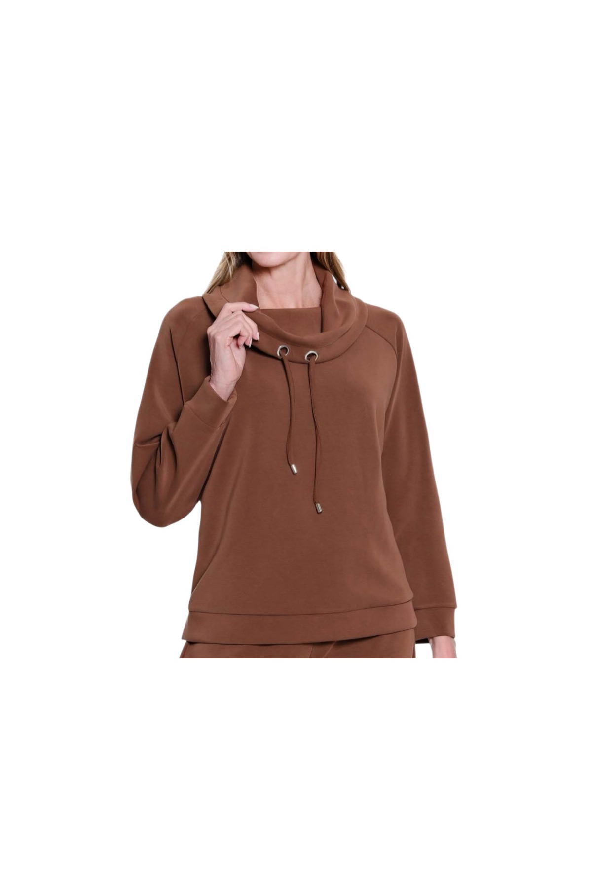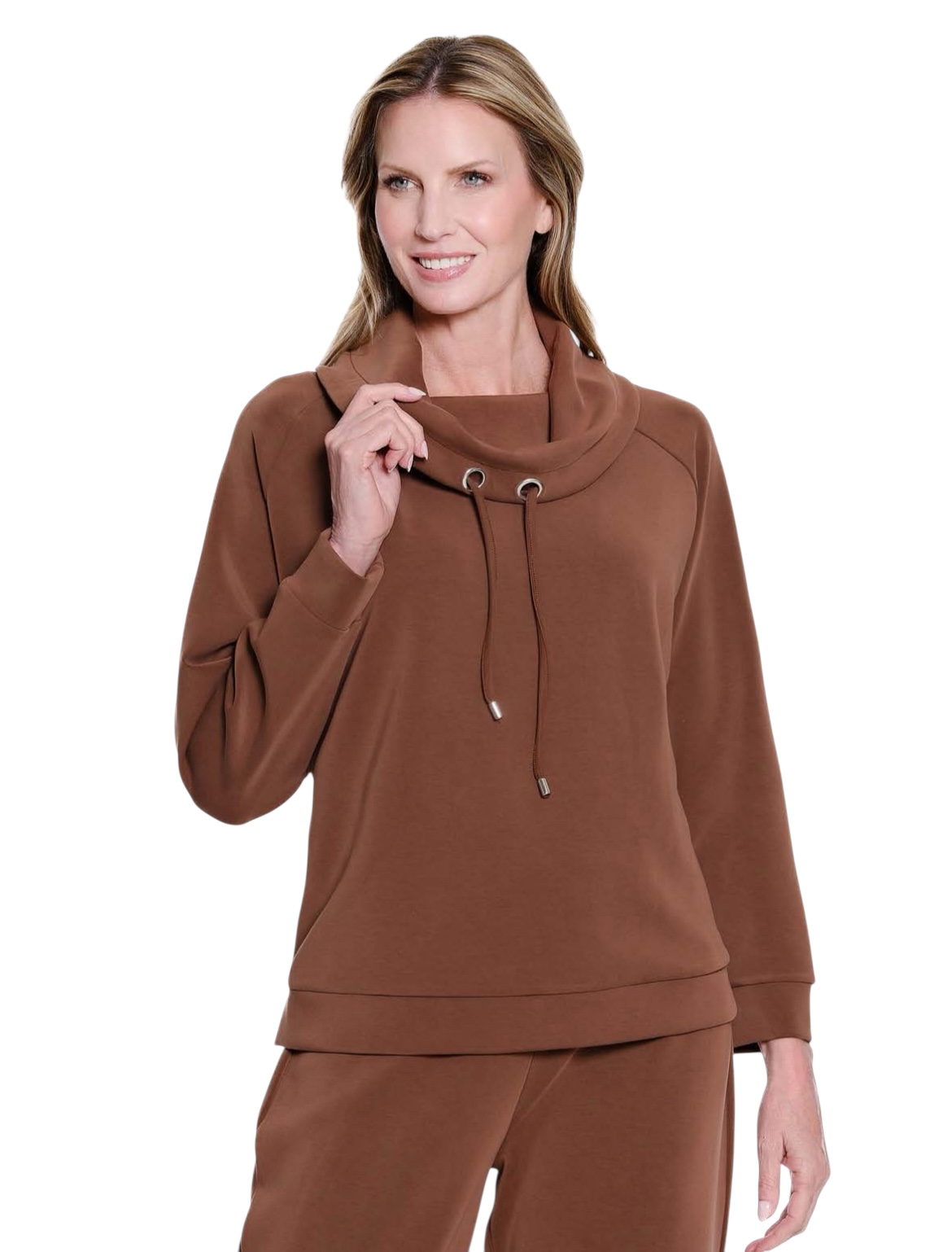 MULTIPLES SUPER SOFT DRAW STRING COWL NECK TOP