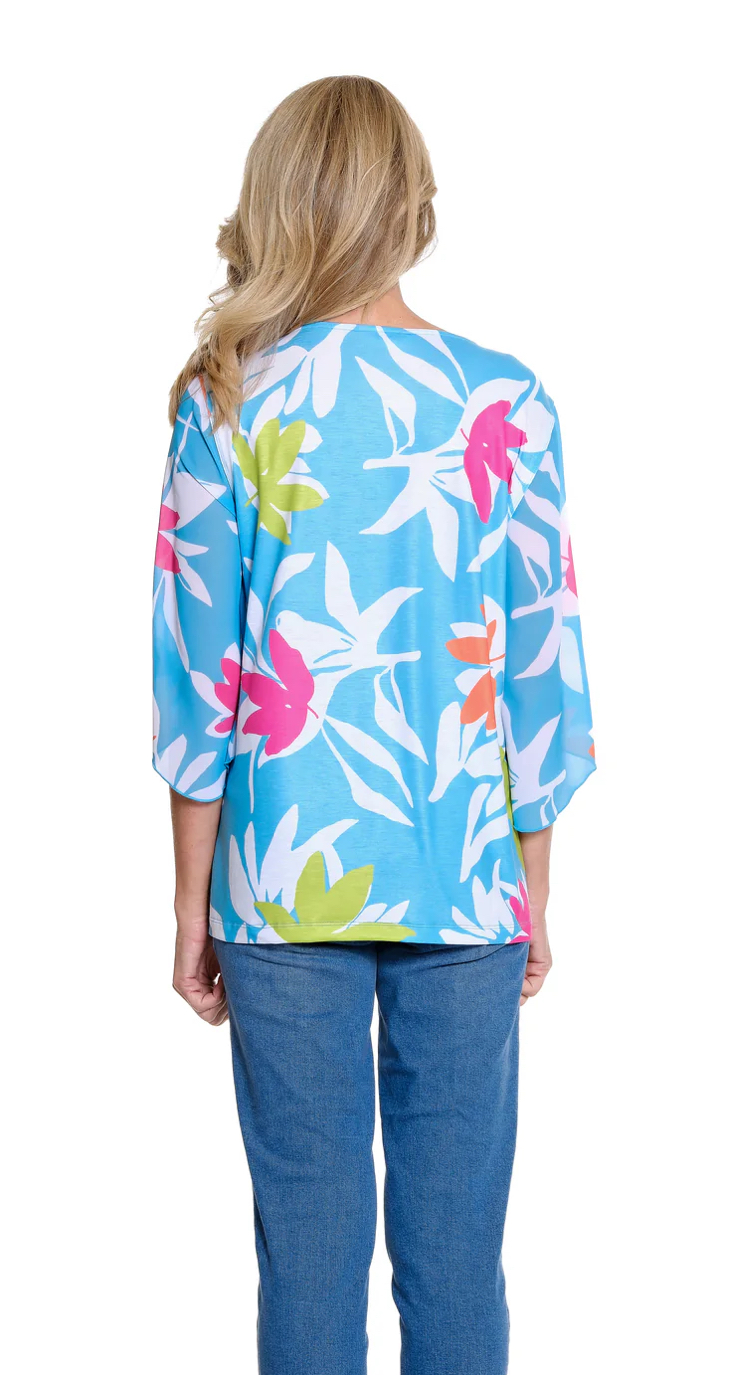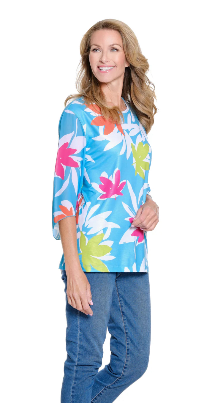 MULTIPLES TURQUOISE FLORAL KNIT TOP