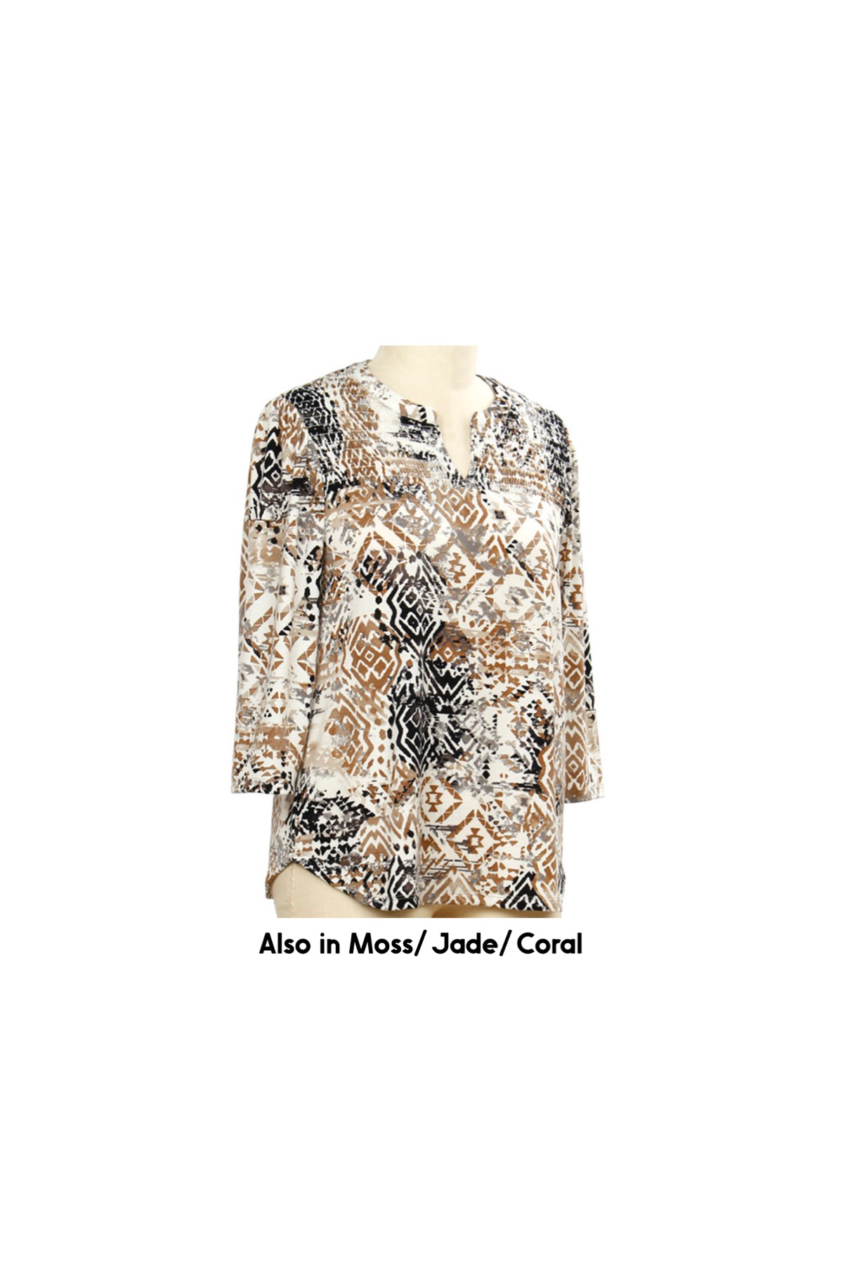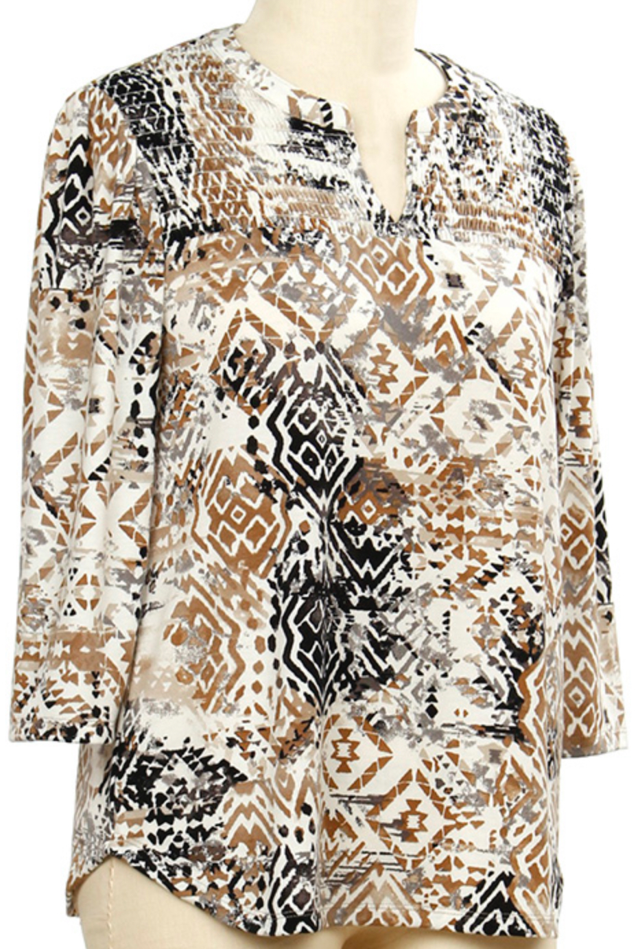 SOUTHERN LADY 3/4 SLEEVE AZTEC PRINT TOP