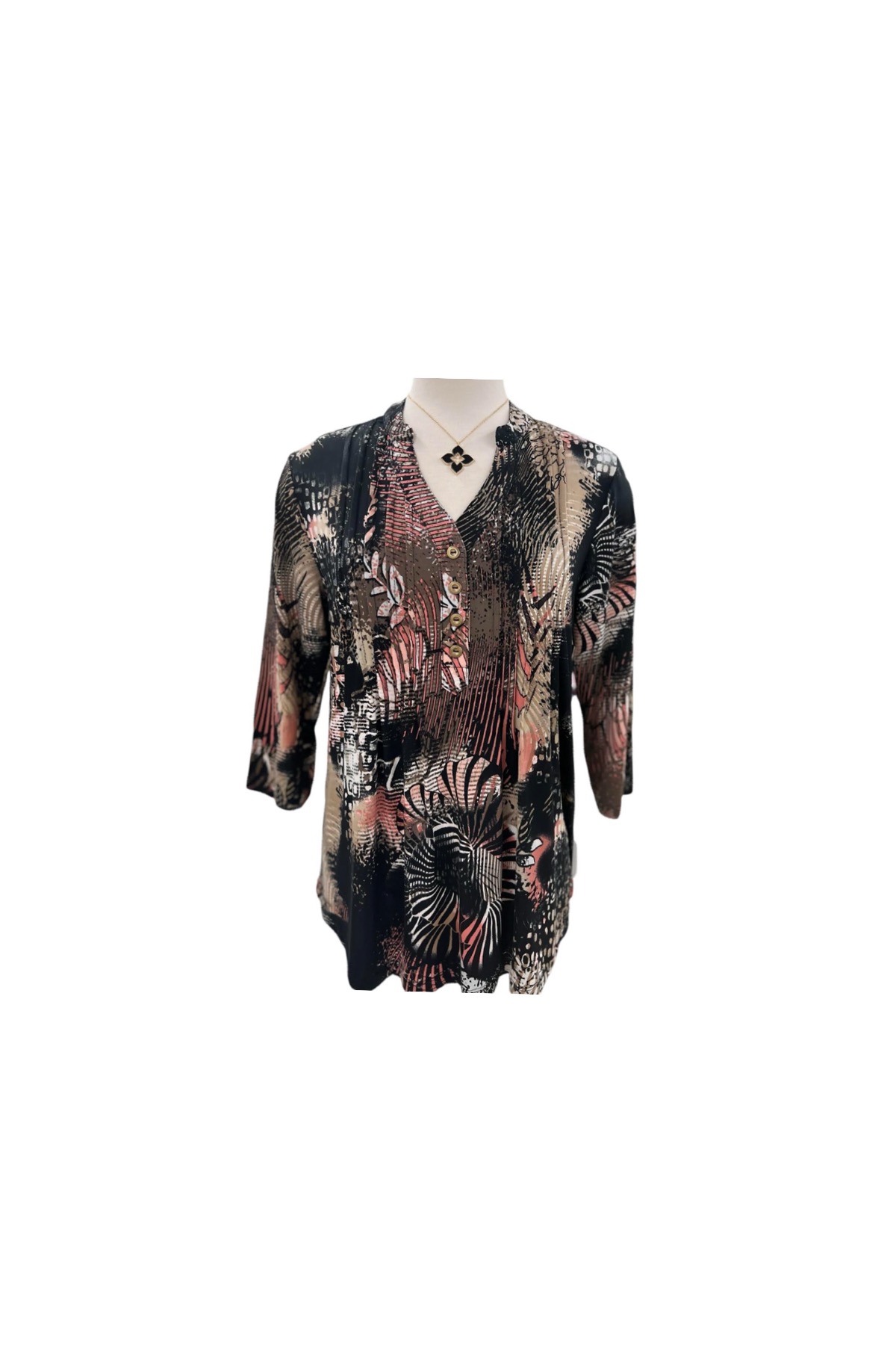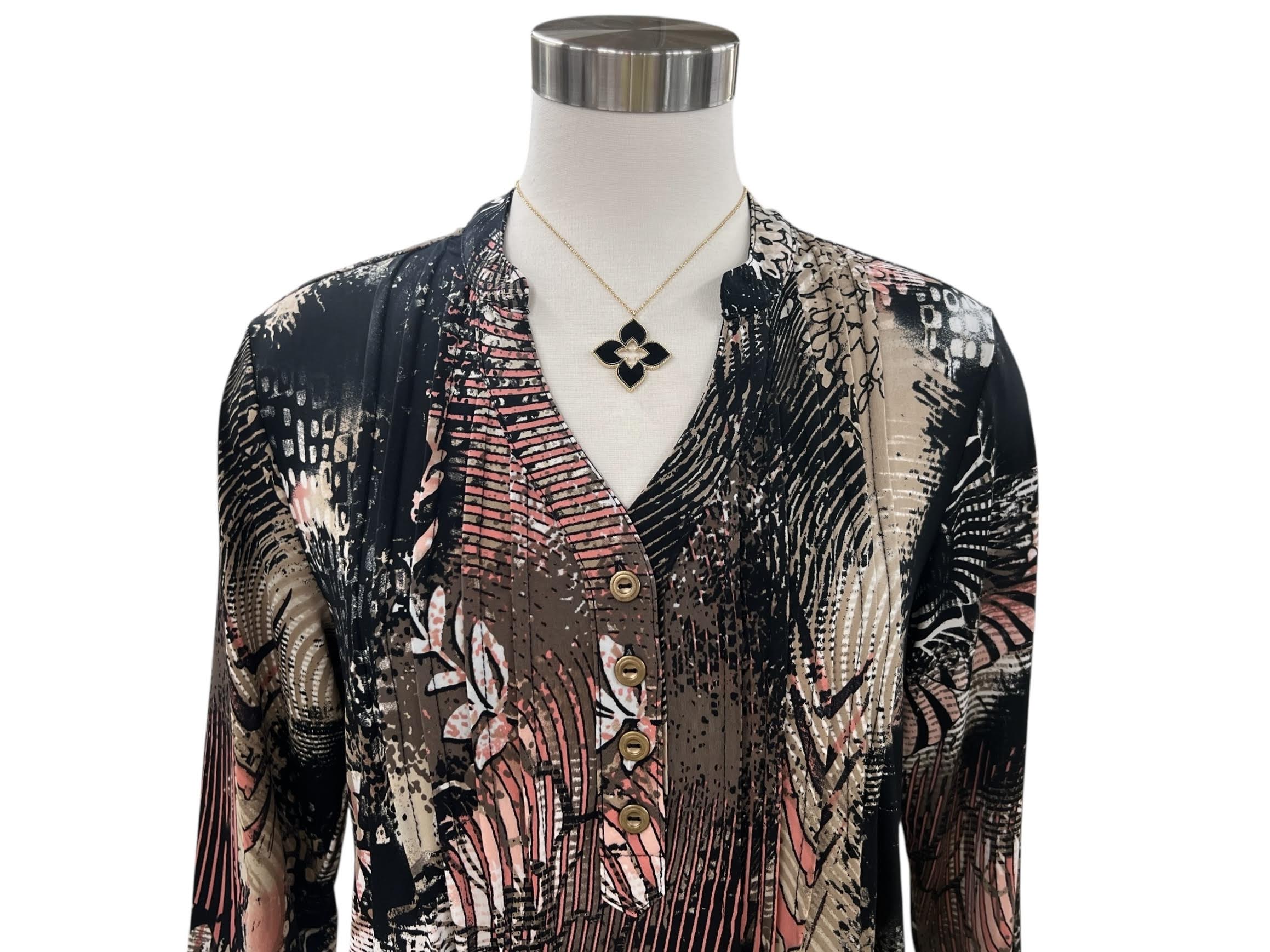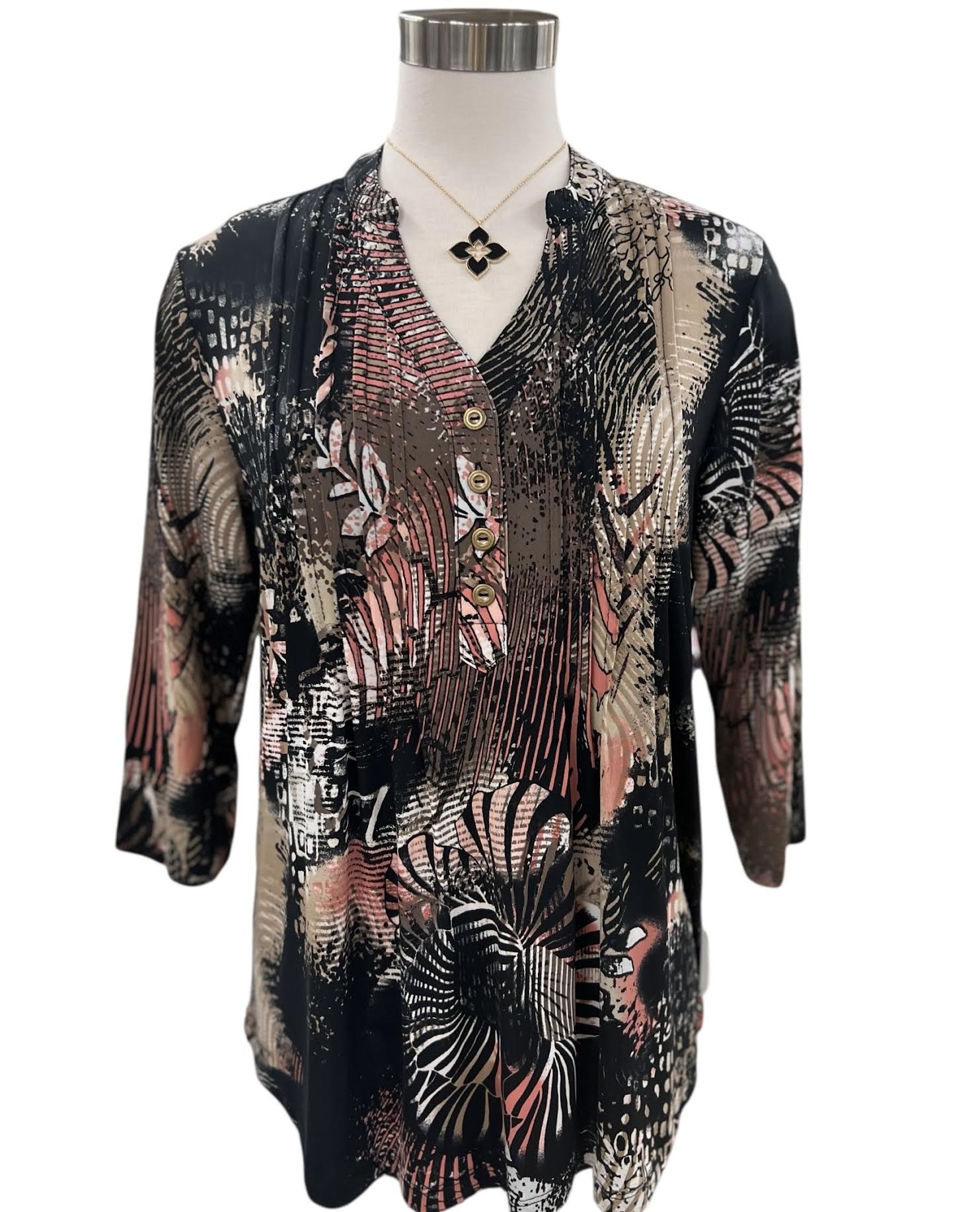 SOUTHERN LADY 3/4 SLEEVE PLEAT FRONT PRINT TOP