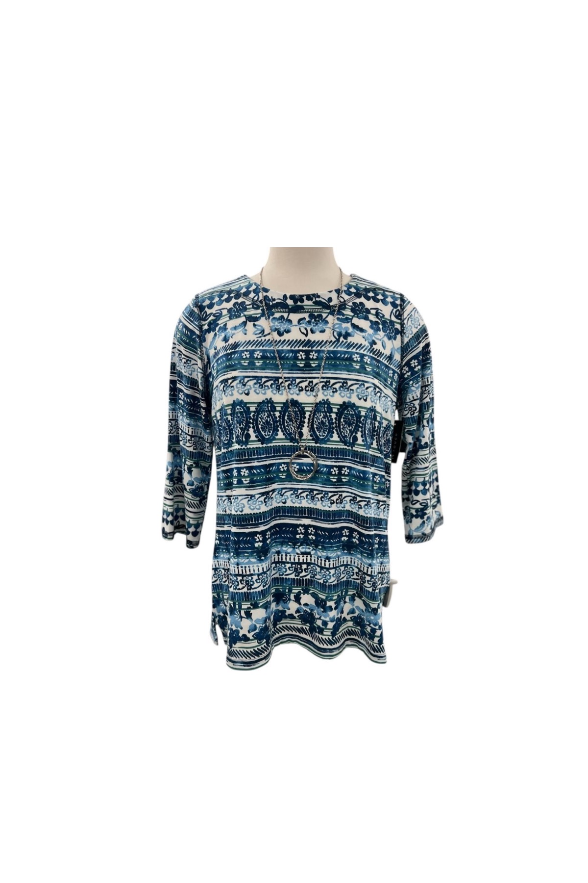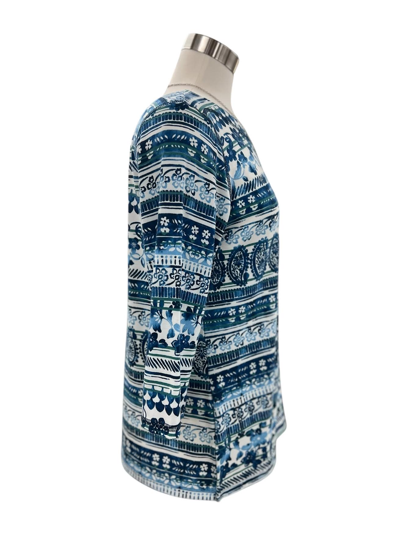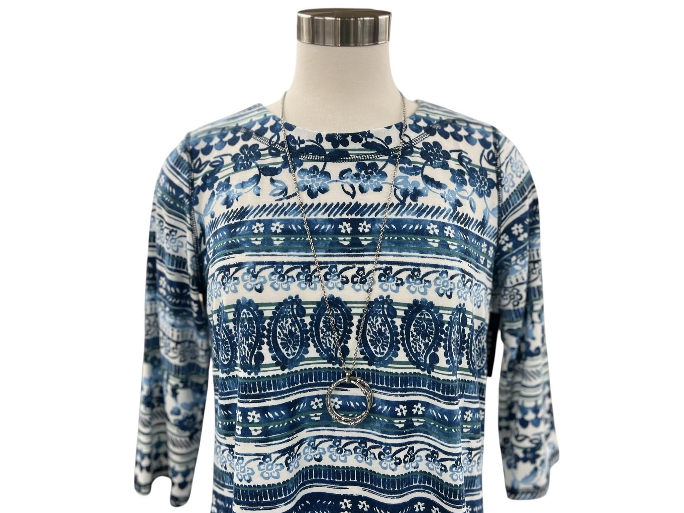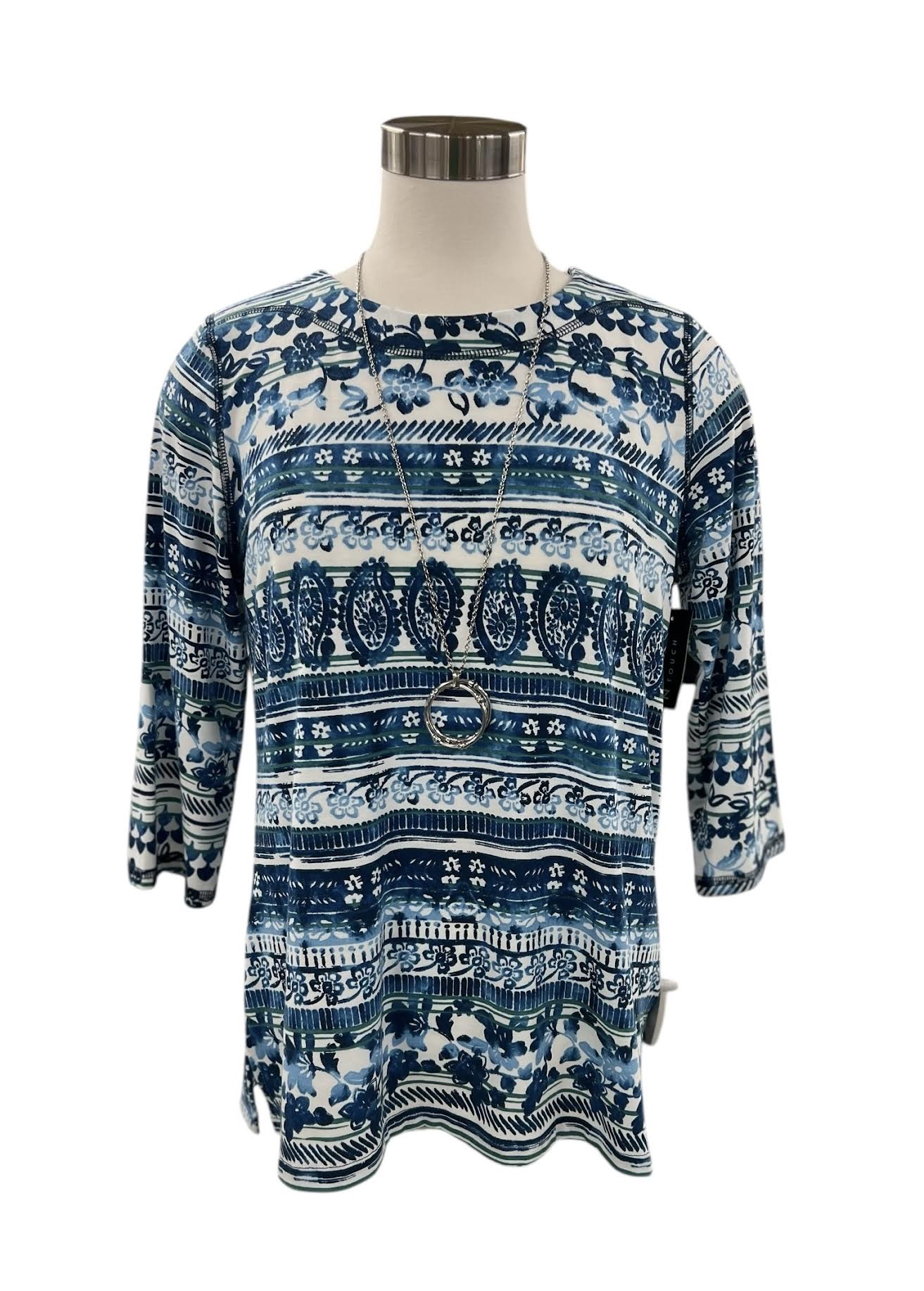 SOUTHERN LADY 3/4 SLEEVE PRINT STRIPE TOP