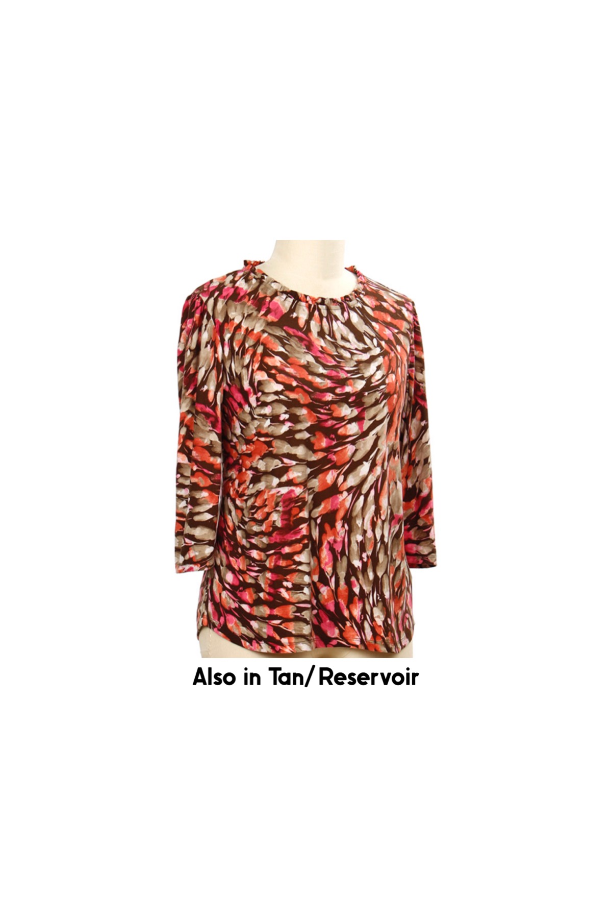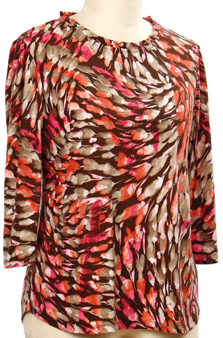 SOUTHERN LADY 3/4 SLEEVE RUFFLE NECK PRINT TOP