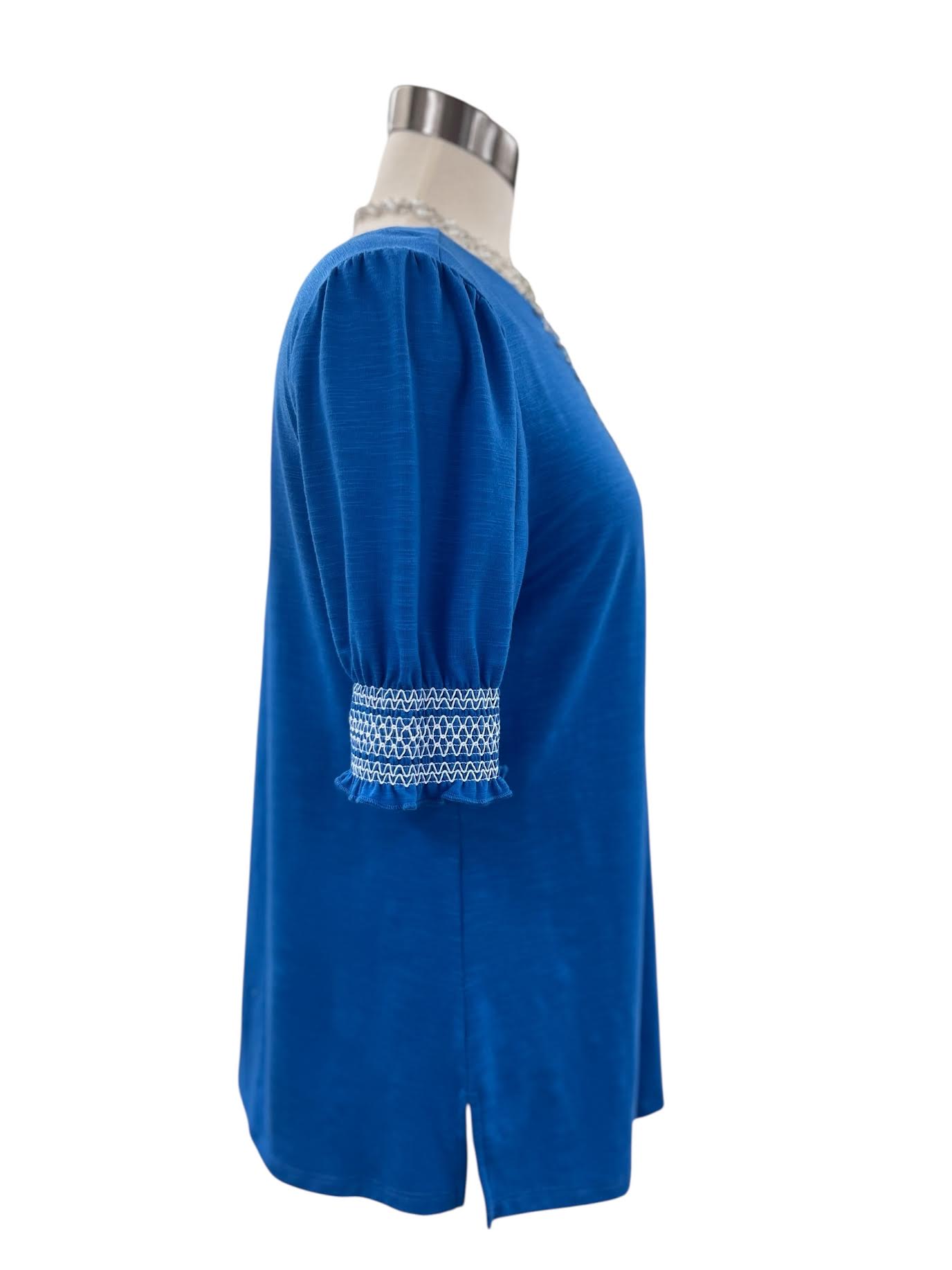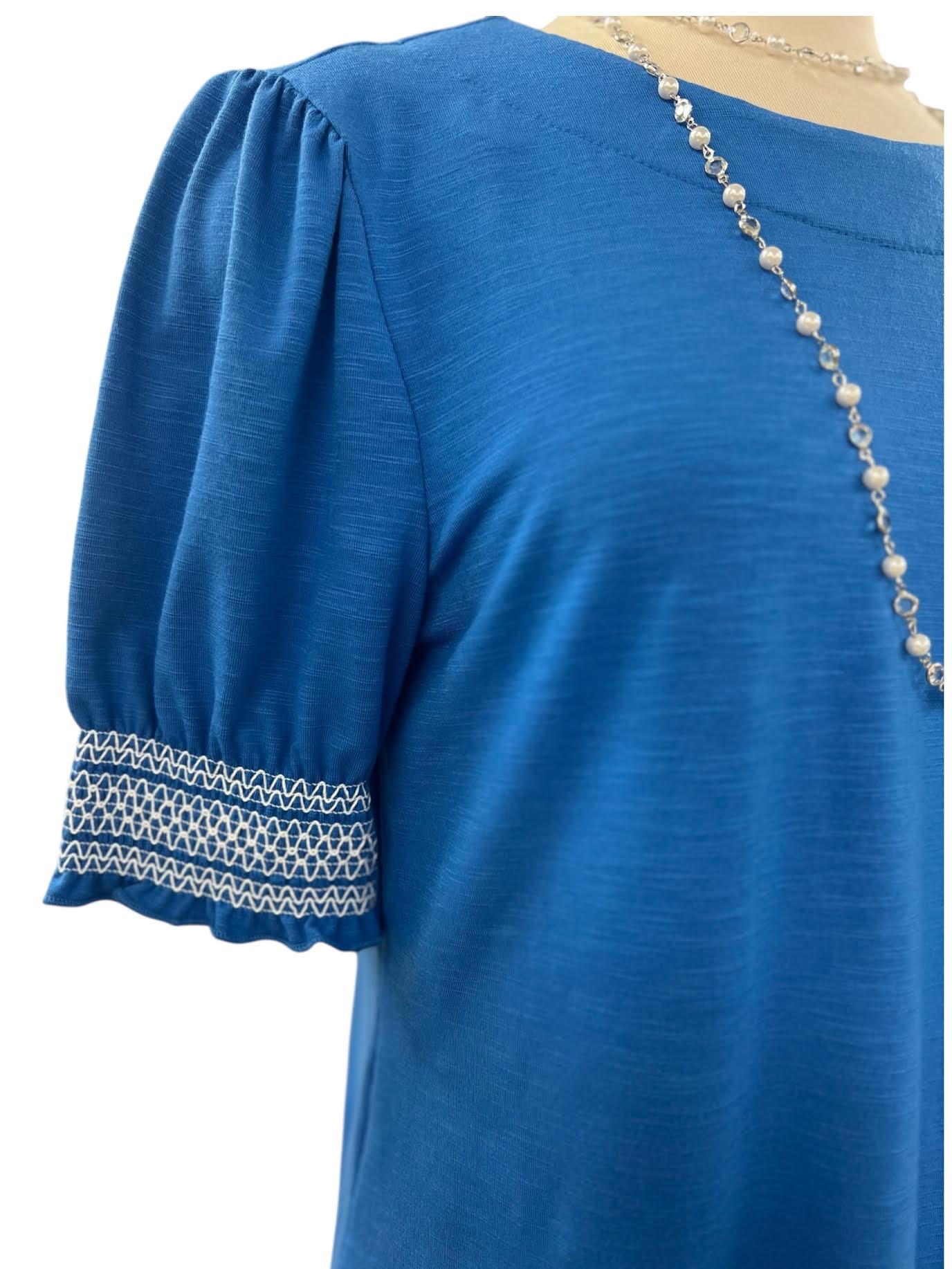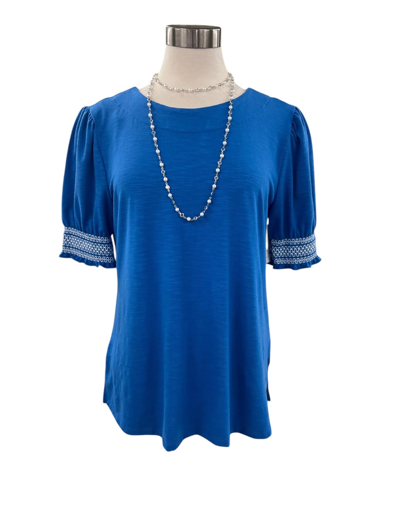 SOUTHERN LADY SHORT SLEEVE SMOCKED PUFF SLEEVE KNIT TOP