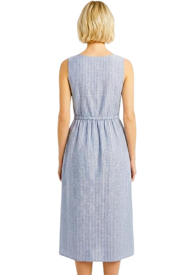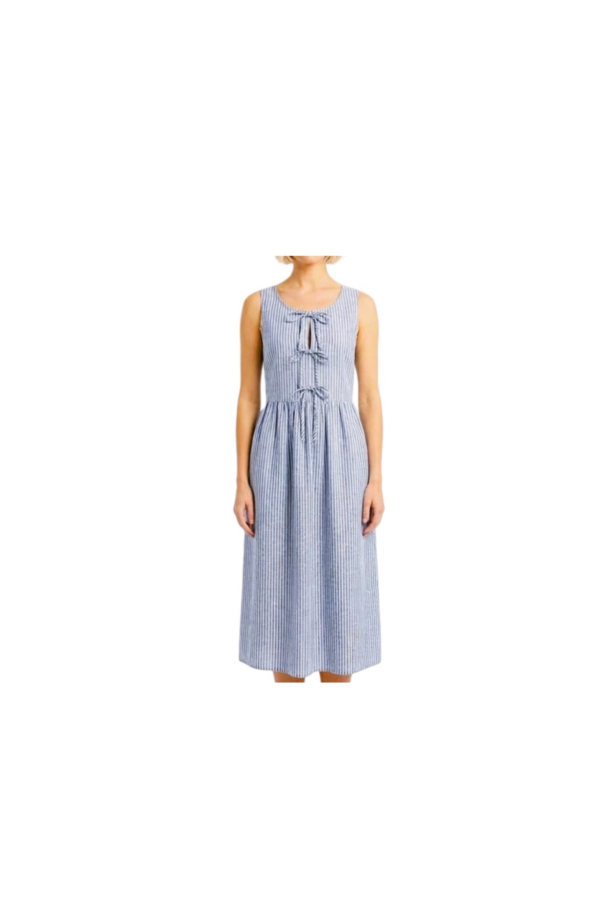 STACCATO BOW TIE FRONT STRIPE MIDI DRESS quantity