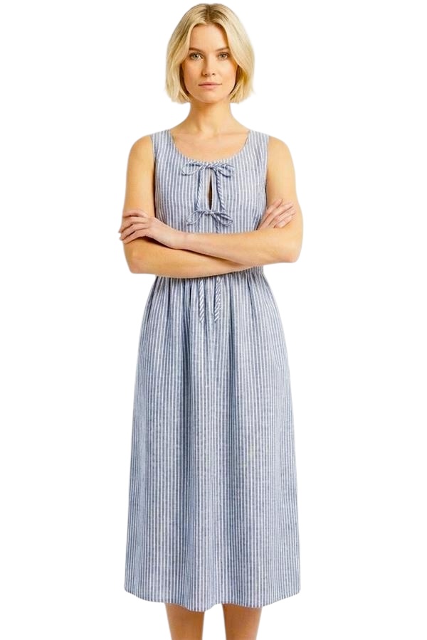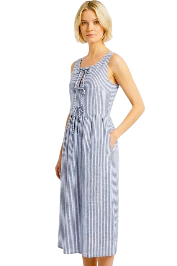 STACCATO BOW TIE FRONT STRIPE MIDI DRESS