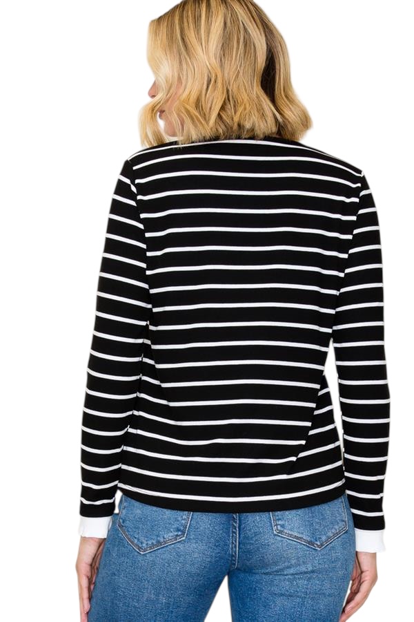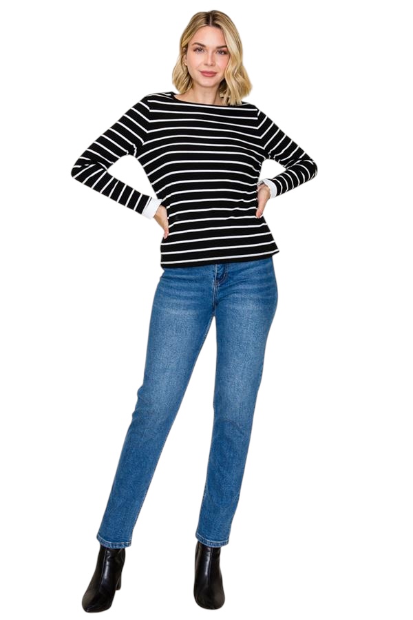 STACCATO COLOR TRIM SHORT SLEEVE STRIPE TOP
