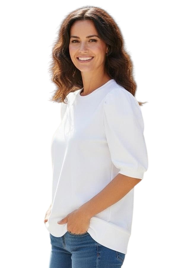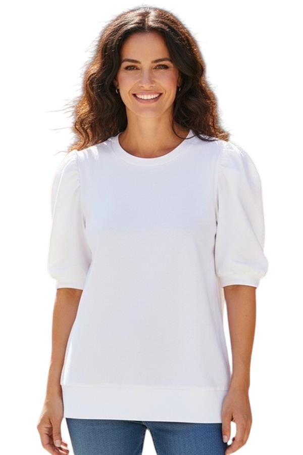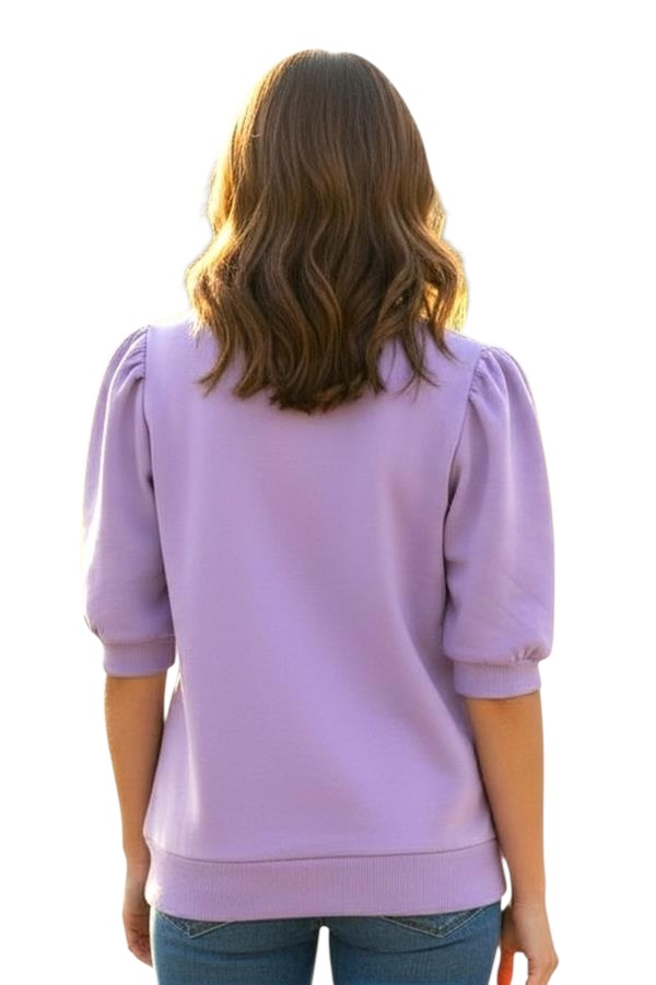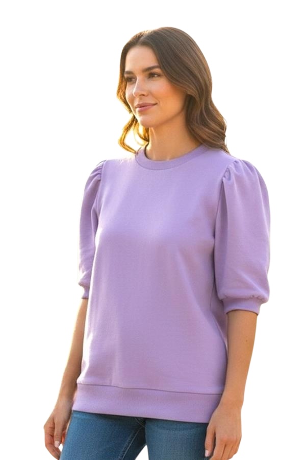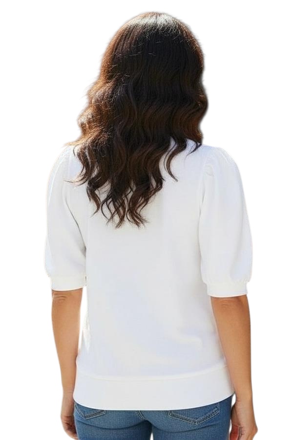 STACCATO FRENCH TERRY PUFF SLEEVE TOP