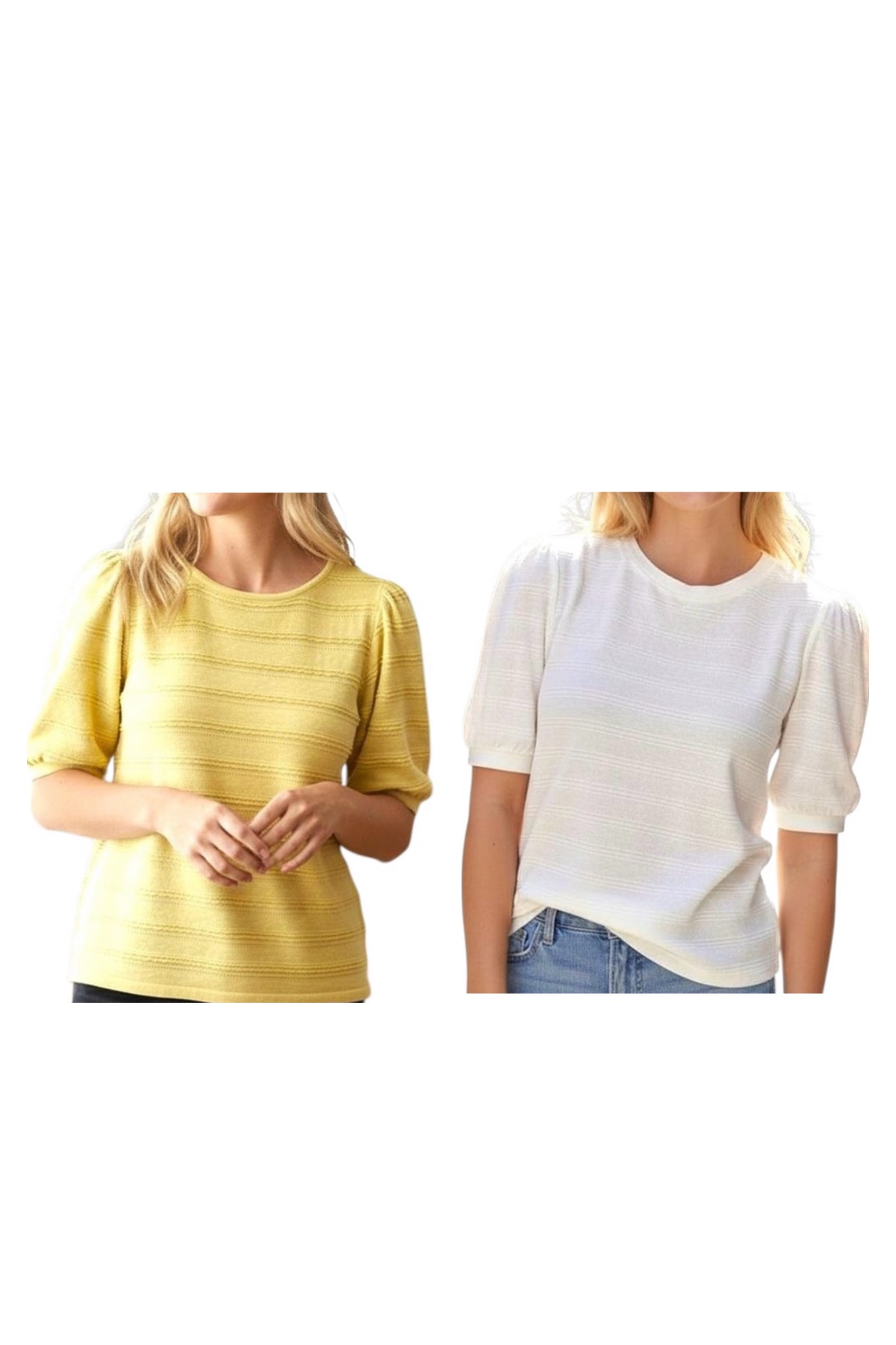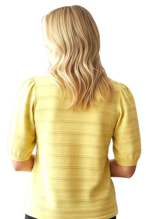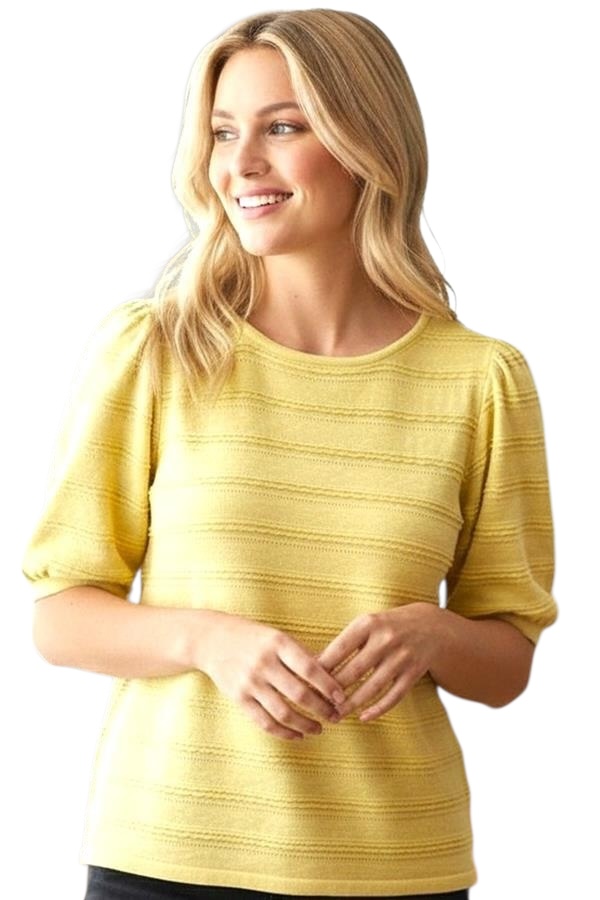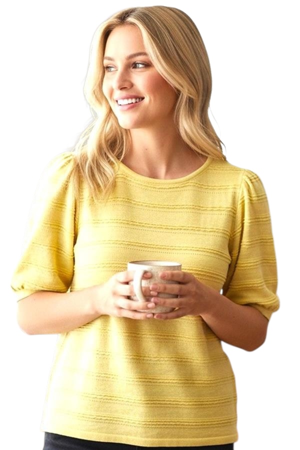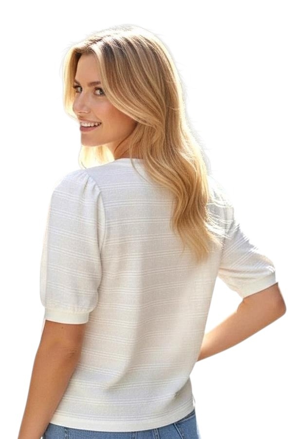 STACCATO HALF BALLOON SLEEVE TEXTURED STRIPE SWEATER