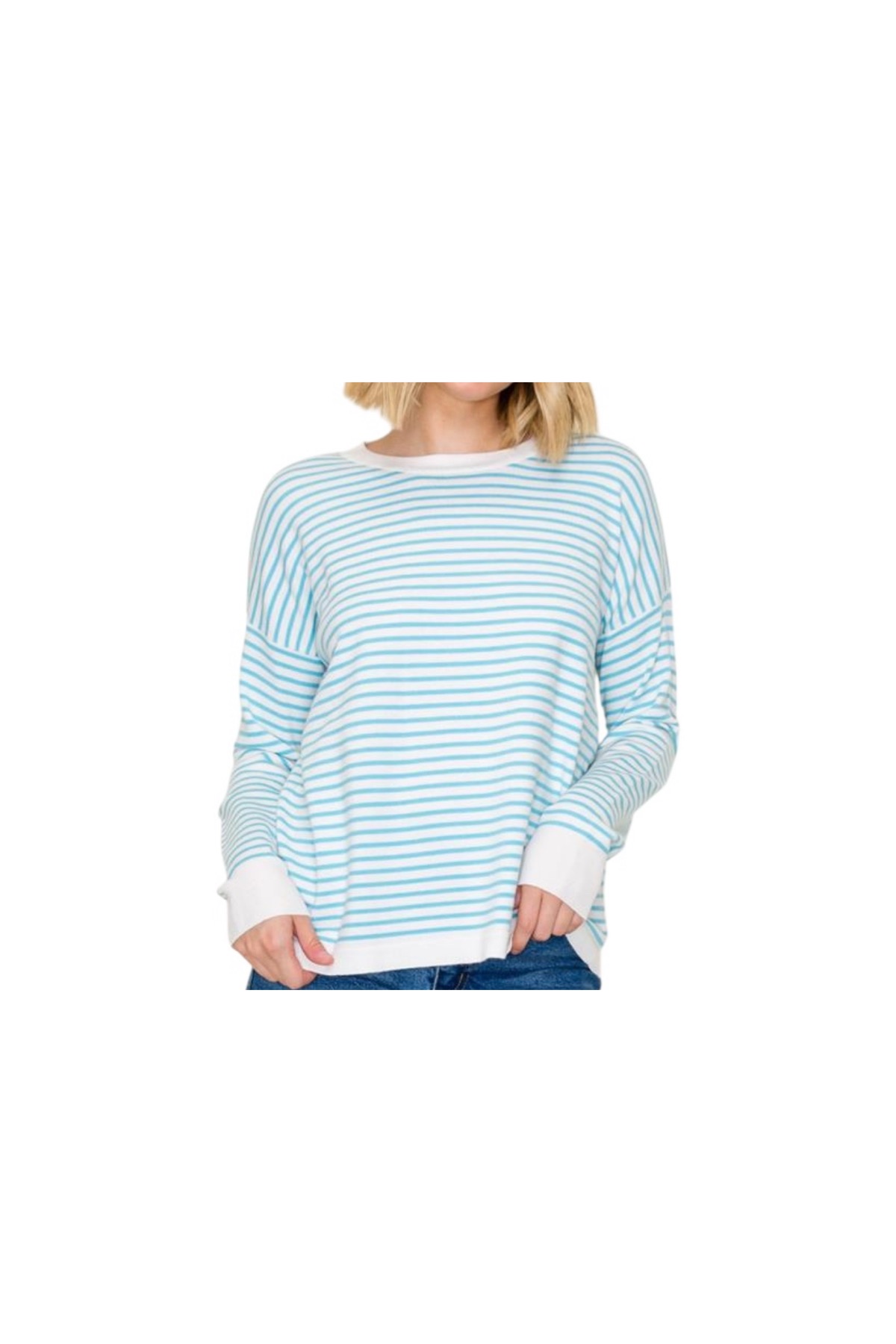 STACCATO LONG SLEEVE STRIPED PULLOVER SWEATER quantity
