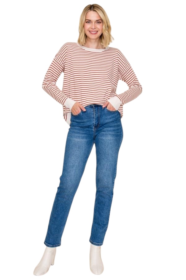 STACCATO LONG SLEEVE STRIPED PULLOVER SWEATER